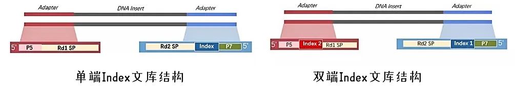 由于Index引入方式不同,i7端的index存在相同和反向互补的情况。由于Illumina不同机型双Index PE测序策略中Index2(i5)的读取方式不同,i5端的Index存在相同和反向互补的情况。