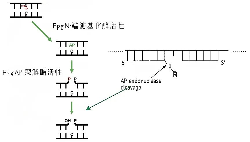 Illumina是利用甲酰胺嘧啶-DNA糖基化酶(Fpg)对8-氧鸟嘌呤(8-oxo-7,8-二氢鸟嘌呤)的选择性切割作用,在芯片上的P7引物链上加入一个8-oxo-dG,用Fpg处理,就把8-oxo-dG碱基切掉,并把DNA链切断,留下3´磷酸基团。