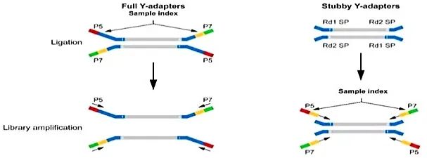 完整接头单条链两端接P5+P7,非完整接头接P5+P7´。