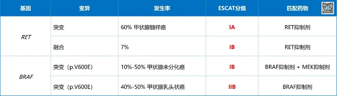 ▲ 晚期甲状腺癌检测基因列表(ESCAT I/II级)
