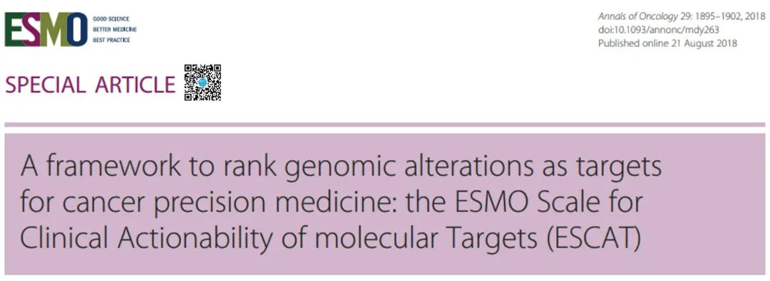 1.Mateo J, Chakravarty D, et al. A framework to rank genomic alterations as targets for cancer precision medicine: the ESMO Scale for Clinical Actionability of molecular Targets (ESCAT). Ann Oncol. 2018 Sep 1;29(9):1895-1902.