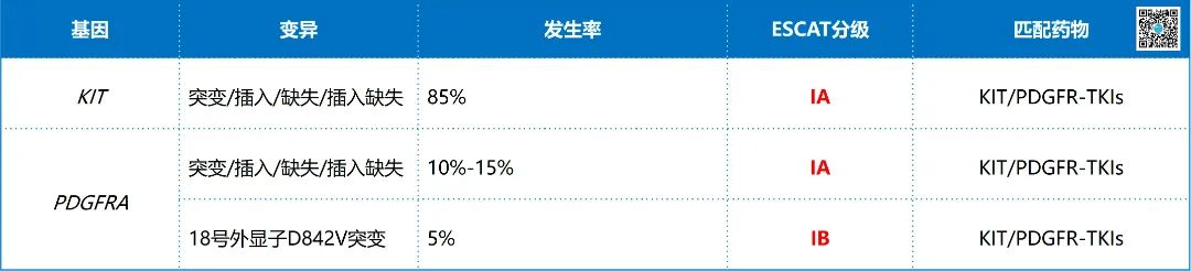 ▲ 晚期胃肠道间质瘤检测基因列表(ESCAT I/II级)