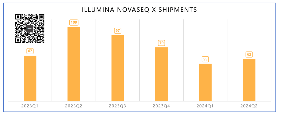 2024Q1 NovaSeq X出货量达到62台,逊于2023Q2的109台,但是好在止住了颓势。 自正式商业化出货,NovaSeq X出货总数量达到469台。 根据Illumina的测算,一台NovaSeq X能带来的年化收益约为100万美元,这样大概算算仅目前已有机器就能带来4.69亿的收入。