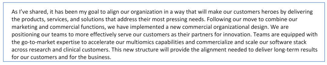 具体来说,Jacob用了三板斧:换帅、换兵、换产品。 换帅这事,咱们聊过 不仅仅是分拆GRAIL!Illumina的两件大事!