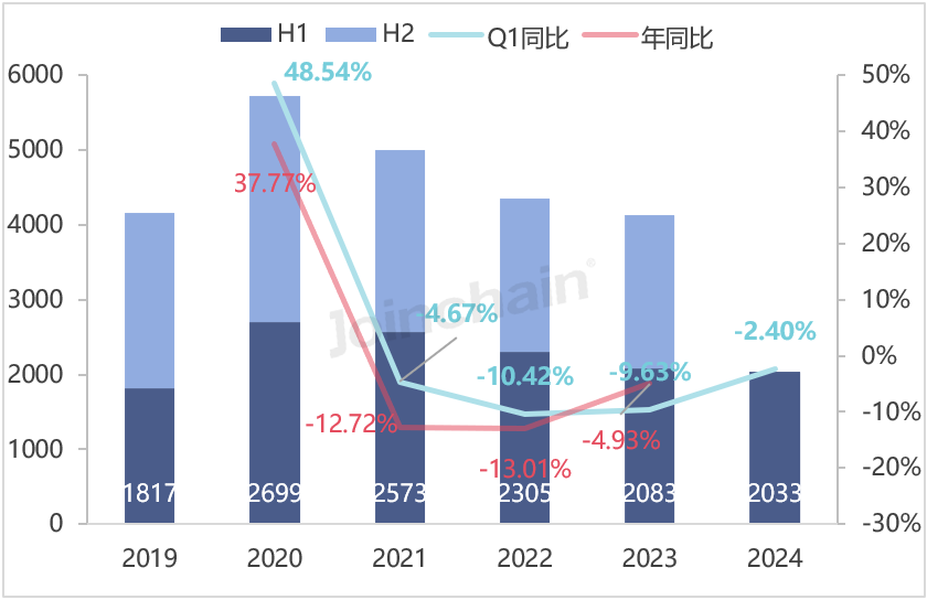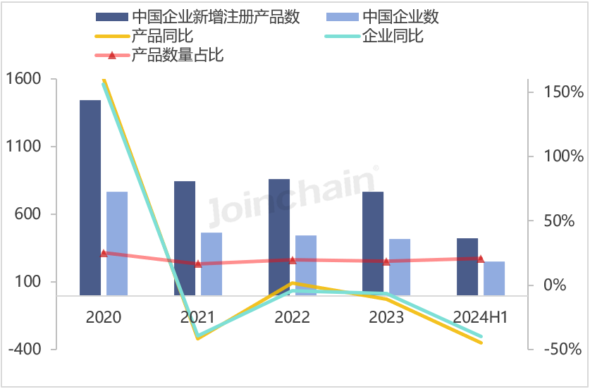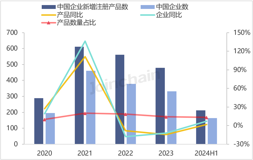 图 4  2020-2024H1中国企业获得澳大利亚医疗器械产品注册证情况