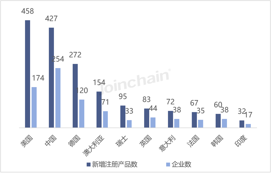 据众成数科(JOINCHAIN)统计,在2024年上半年获得澳大利亚境内医疗器械产品注册证的国家中,美国以458件产品位居榜首,占比22.53%,涉及企业174家;中国(不含香港、澳门、台湾)排在第二,产品数量为427件,占比21.00%,涉及企业254家;排名第三的是德国,新注册产品数量为272件,占比13.38%,涉及120家企业;澳大利亚排在第四位。