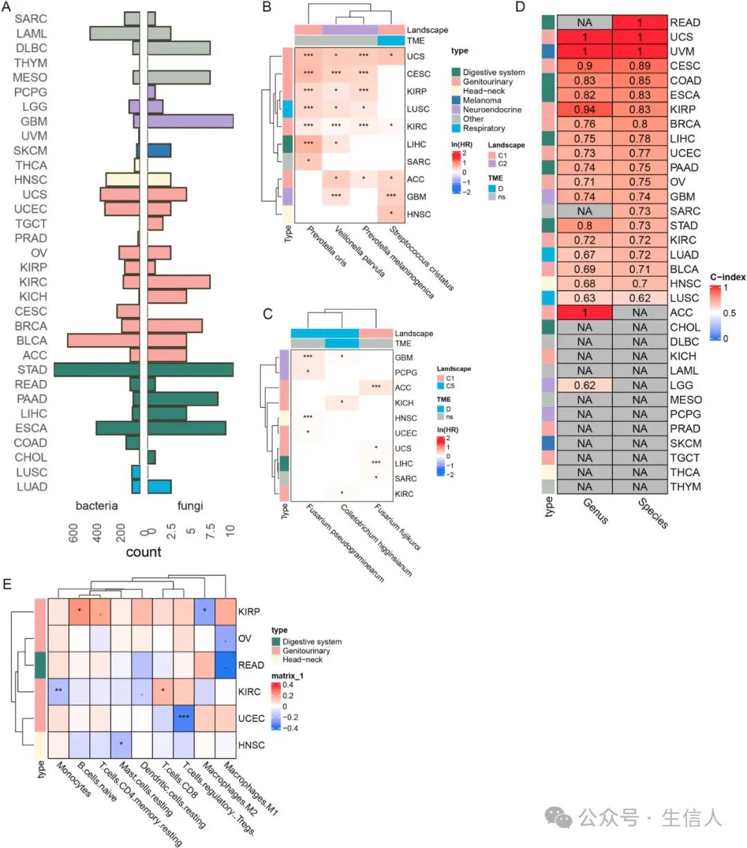 5 肿瘤内真菌成分影响各种癌症的免疫分型