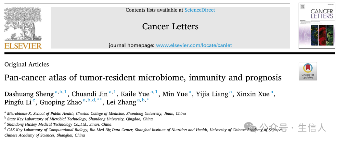 Sheng D, Jin C, Yue K, Yue M, Liang Y, Xue X et al. Pan-cancer atlas of tumor-resident microbiome, immunity and prognosis. Cancer Letters 2024;598:217077.