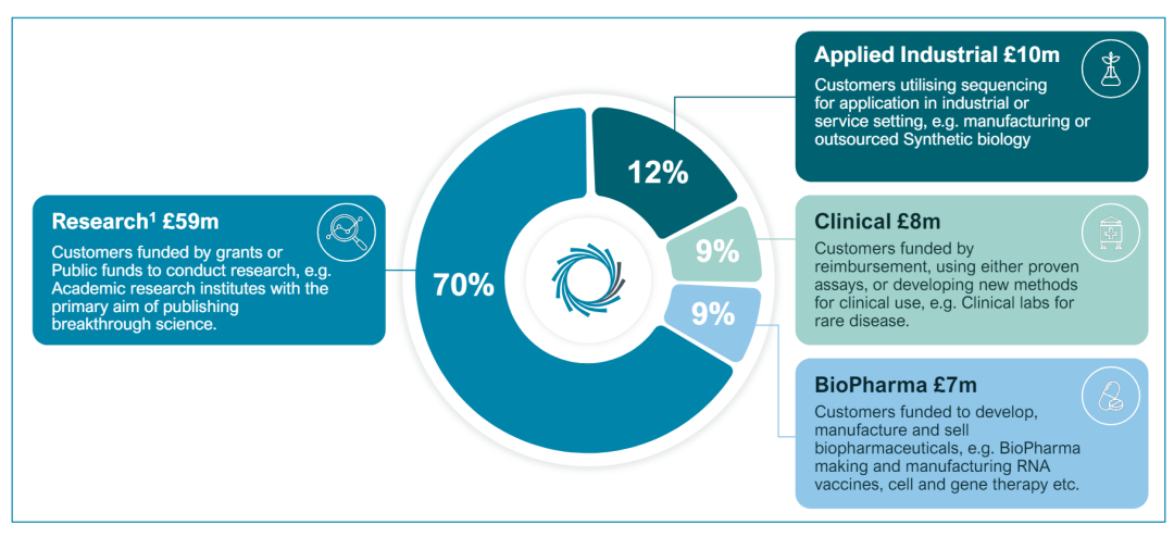 ONT至少是近两年第一次公布了终端用户的构成情况,目前纳米孔测序的绝对主力仍然是研究,占比70%。