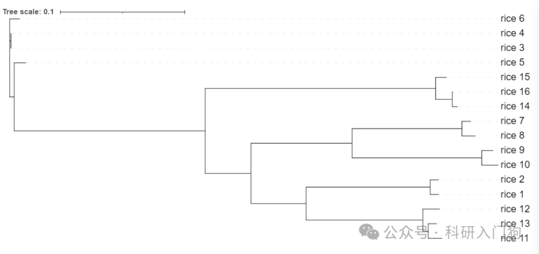 然后利用这些检出的SNP信息,进行品种区分。如下图所示,共计6个品种,做了16个测试(做了重复实验)。利用SNP信息,进行聚类分析,鉴定不同品种。从聚类分析结果,来看6个品种可以进行聚类区分(如下图聚类分析进化树)。
