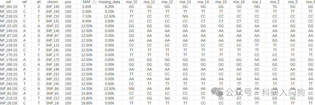 上篇文章介绍了采用164个SNP位点进行区分不同水稻品种:多少分子标记可以区分不同水稻品种。今天接上篇文章,继续往下实验,又找到了6个不同的水稻品种。利用多重PCR结合NGS技术进行鉴定,获得如下的鉴定结果,MAF最低为3.3%,missing_data最高是12.5%,位点检出率为99.8%,整体检出效果比较好。