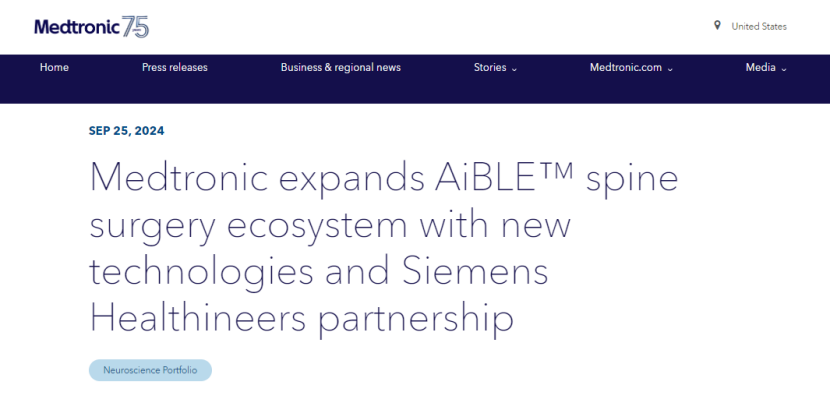 除官宣上述合作外,美敦力还表示,将推出多项软件、硬件和成像创新产品。这些增强功能旨在推进美敦力创新导航、机器人、数据和人工智能、成像、软件和植入物的智能生态系统AiBLE™,使脊柱和颅骨手术的结果更加可预测。