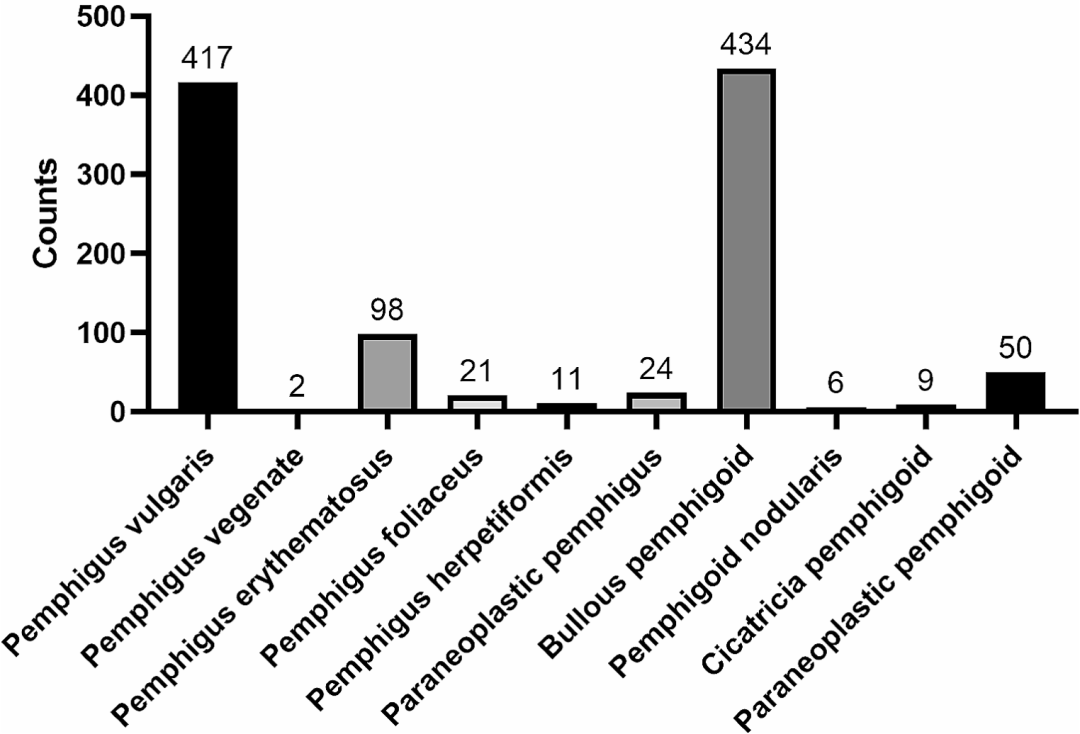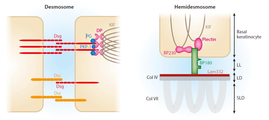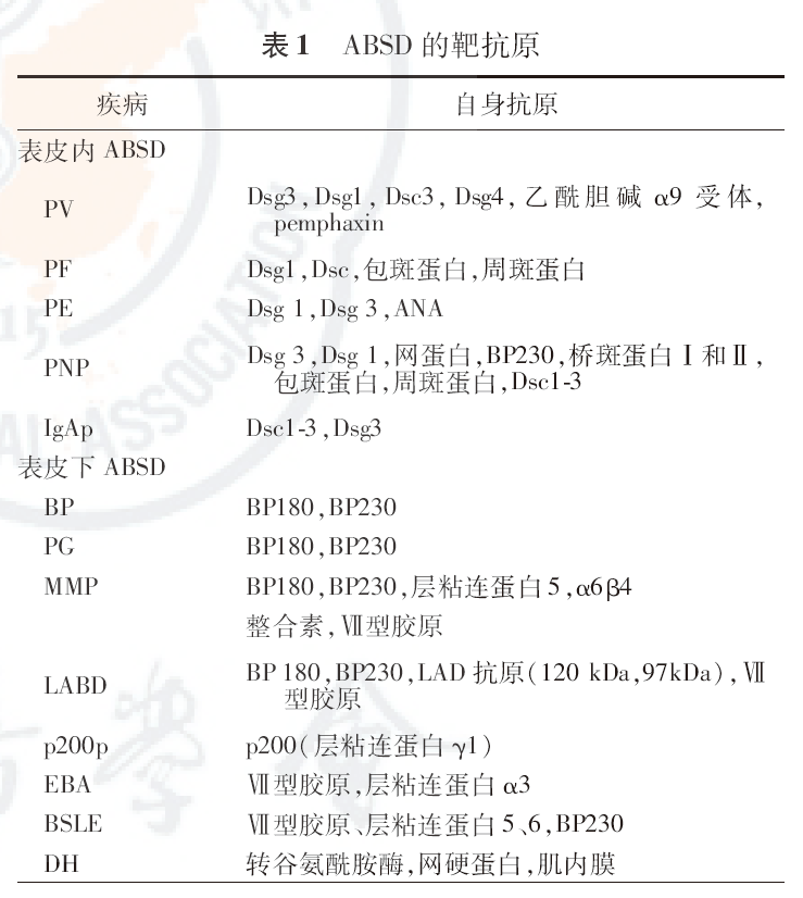 由于初期皮损表现不典型,ABSD患者误诊率高达50%-70%[3-5],尤其在非水疱期极易被误诊为皮炎、湿疹,大疱期最易误诊为单纯疱疹/带状疱疹,不同ABSD亚型间也会出现误诊的情况。对于ABSD患者,误诊可能导至病情延误,使皮损等症状持续不愈且逐渐加重,长期误诊甚至会延误最佳治疗时机,引发多种并发症,甚至危及生命。 图2 180例亚洲ABSD住院患者17年内的生存情况[7] 图3 2016-2023年复旦大学附属华山医院ABSD患者分布[6] 表1 ABSD的靶抗原 不同 ABSD 的临床表现有相似之处,需要结合不同免疫学检测技术包括直接免疫荧光(DIF)、间接免疫荧光(IIF)、ELISA、免疫印迹( IB)及免疫沉淀(IP)等来明确疾病的自身抗体,以提供准确的诊断。 (1)DIF:可用于检测病变组织和细胞中免疫球蛋白和补体的存在及分布,是诊断 ABSD 的金标准,表现为棘细胞间 IgG/IgA/C3 呈网格状沉积(主要见于表皮内ABSD)、基底膜带 IgG/IgA/C3 呈线状沉积(主要见于表皮下ABSD)、真皮乳头 IgA 呈颗粒状沉积(见于疱疹样皮炎); (2)IIF:用于检测血清中的抗体,根据检测靶抗原的不同而选择不同的底物。IIF往往与DIF表现一致,但敏感度更低; (3)ELISA:以重组蛋白或者人角质形成细胞提取物为底物检血清中抗体(Dsgl、Dsg3、BP180、BP230等); (4)IB和IP:常做确证实验。 化学发光法(CLIA)为近几十年发展起来的新一代免疫检测技术,通过化学发光反应来检测抗体-抗原复合物。在天疱疮和类天疱疮患者中,CLIA检测Dsg1、Dsg3和BP180的与ELISA的符合率高达为96%、97%和96%[9]。与传统手工ELISA相比,该技术检测时间短、自动化程度高,将有望成为检测ABSD患者自身抗体的有力方法。 |