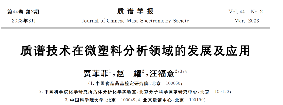 [1]贾菲菲,赵耀,汪福意.质谱技术在微塑料分析领域的发展及应用[J].质谱学报,2023,44(02):131-145.