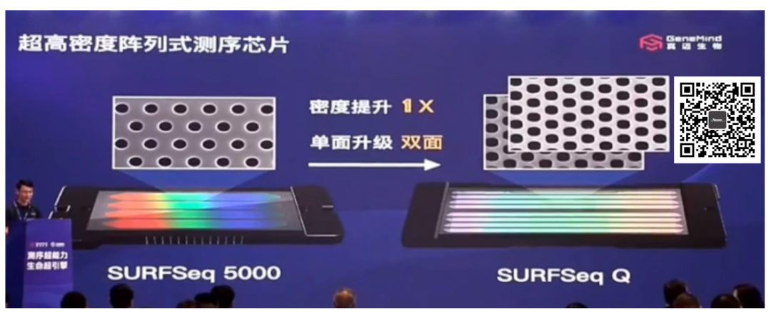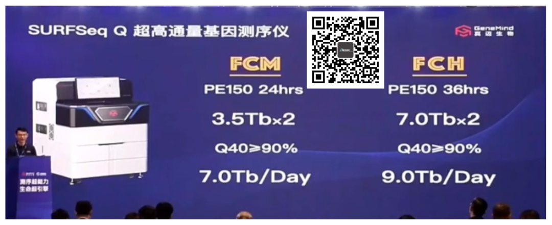 真迈的测序仪发布会看完了。 最真实的第一感受:导播绝对是孙雷总的颜值粉...一直怼脸拍...很多图没截到,大家包涵下。 扯远了,回到今天的主题:真迈SURFSeq Q这个“大家伙”。 #01 虽然还是SURFSeq 平台,根据真迈本次公开的信息,那还是进行了很多升级和创新。 从酶、测序芯片和碱基识别算法,真迈都毫不吝啬都怼给了SURFSeq Q(保密的不算)。 先看酶。 由于加入到测序仪中的dNTP是经过荧光修饰的,因此真迈研发人员构建了聚合酶突变库筛选出最适合的聚合酶,保证了长时间测序过程中酶的活性。 这玩意不得整个专利?看了下目前真迈已经申请239项了(没有去重),但是还没有找到相关的,可能选择作为技术秘密了吧。 Ps,在看专利的时候发现了个小彩蛋,放到文末了,可以瞅瞅。 再看下测序芯片。 与5000类似,同样使用了patterned 芯片,提高了芯片的孔密度。 与500不同的是,Q采用双面芯片,也就是在同样大小的芯片上实现更高的数据产出。 这涉及到上下表面对焦、流体技术等等各方面的技术,最重要的,得是玻璃基芯片。 至于后面的TDI线扫描技术就不说了,这个大家基本都得有。 最后,是碱基识别算法。 感谢导播,只截图到这一张。 总之,通过对无法分辨的图像和已知的序列丢给A.I.,真迈训练出了能够高效准确识碱基的算法。 这3个技术的加持下,SURFSeq Q能达到什么水平呢? 那就是测序通量高达9.0Tb/天,Q40超过90%的“小怪兽”。 大家都这么“野”了吗?都是Q40打底... 如果我没记错,NovaSeq X plus S4芯片大概是8T/天吧。 最后放一张图是官方公布的通量、时间和质量的汇总。 应用场景来看,还是面向大型集中式测序市场。 这次发布会在南京,记得当年江北新区大手一挥买了一堆Illumina NovaSeq。 这一次,真迈选择了南京,南京会选择真迈吗? 不管如何,测序仪这个行业真到了百花齐放、美美与共的时候了。 #02 集体爆发 事实上,近期在测序仪领域国内是集体爆发。 2024年赛陆医疗发布了该公司第三款测序仪-Saluseq Nimbo。 这是一款针对桌面的低通量测序仪,全重仅为115公斤(我都比它轻)。 令我印象深刻的是,这货的测序时间好多是带小数点的... 后来想了想,可能是由于部分应用要的就是个分秒必争。 当然,我国测序仪厂商的突破和雄心不仅在于此。 2024年9月9日,华大智造公开发布了CycloneSEQ WT02纳米孔测序仪。 好家伙,NGS+纳米孔这种打法不是第一次见,但是一家厂商同时有这两个平台就独此一份了。 #03 畅想-瞎想 当时看真迈发布会这个配置我还是一愣的。 不知道大家看到这三个大佬的感觉是啥,反正我脑子里面浮现的是: 空间生物学、单细胞、NGS测序仪、纳米孔测序仪.... 这要是三家合并一下,嘿嘿嘿... 你懂我意思吧当然,这是不靠谱的瞎想。 一个不争的事实是,在测序仪这个行业的上下游,我们的创新已经进入深水区。 浮力大,浪也大。 然而风浪越大,鱼越贵,对吧。 有人说国产测序仪是山寨,我觉得他并不了解科学仪器设备。 在这行,特别是测序仪这个行当,山寨产品是没有市场的。 这可是必须要经得起科学家用户们的种种“虐待”和“刁难”,经得起国内外同行、友商的“吹毛求疵”,还有我们这些无良自媒体的各种“冷嘲热讽”。 这要是能山寨,就说明此人已经是通天之能,咱可不敢聊。 曾经,我们没得选。 现在,我们挑挑拣拣。 这次真迈发布会没有听到关于价格方面的信息,可能是下午公布?哪位大佬听到了欢迎留言。 国产测序仪的爆发很可能是一个中国科学仪器发展的缩影,我们的时代,这次终于是要来了吧? #00 彩蛋 这份来自真迈2024年3月29日申请的专利算不算个彩蛋? 好你个浓眉大眼的真迈,也要搞空间生物学了啊