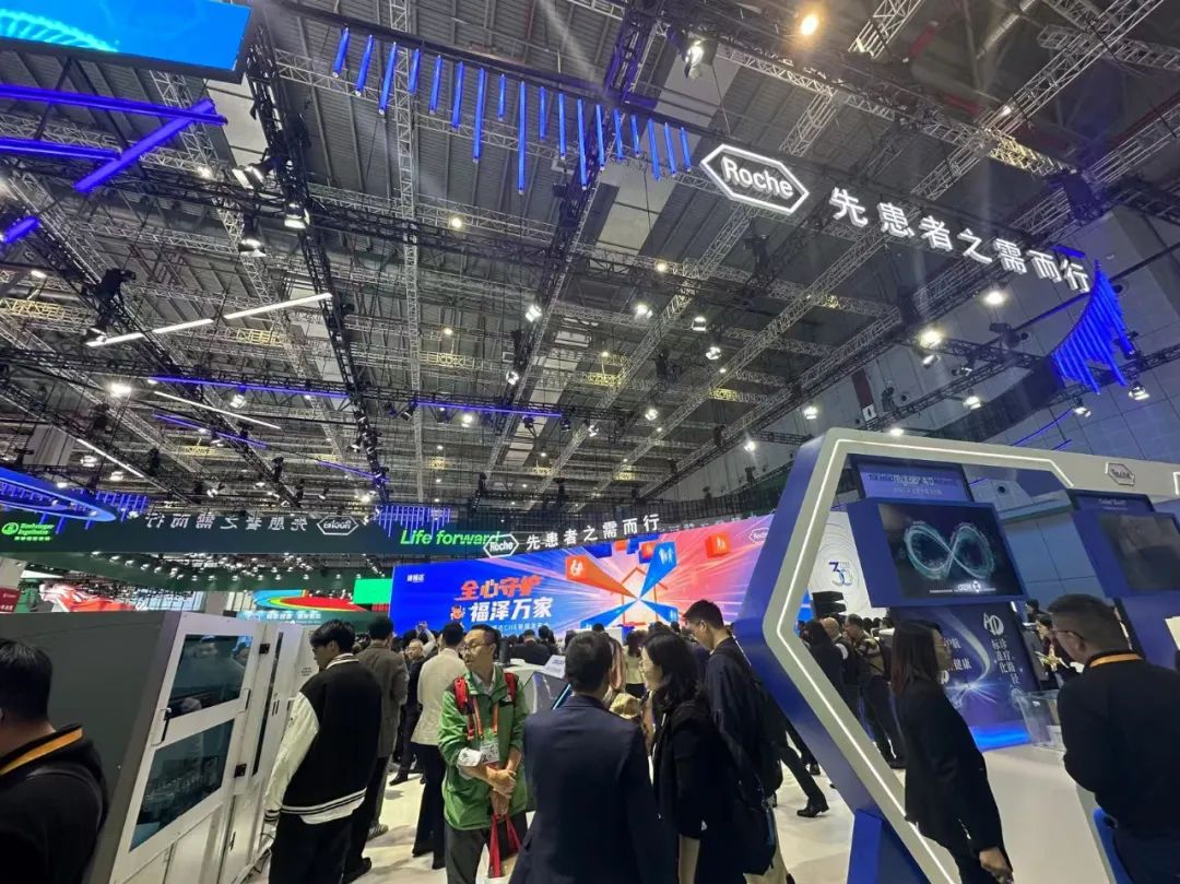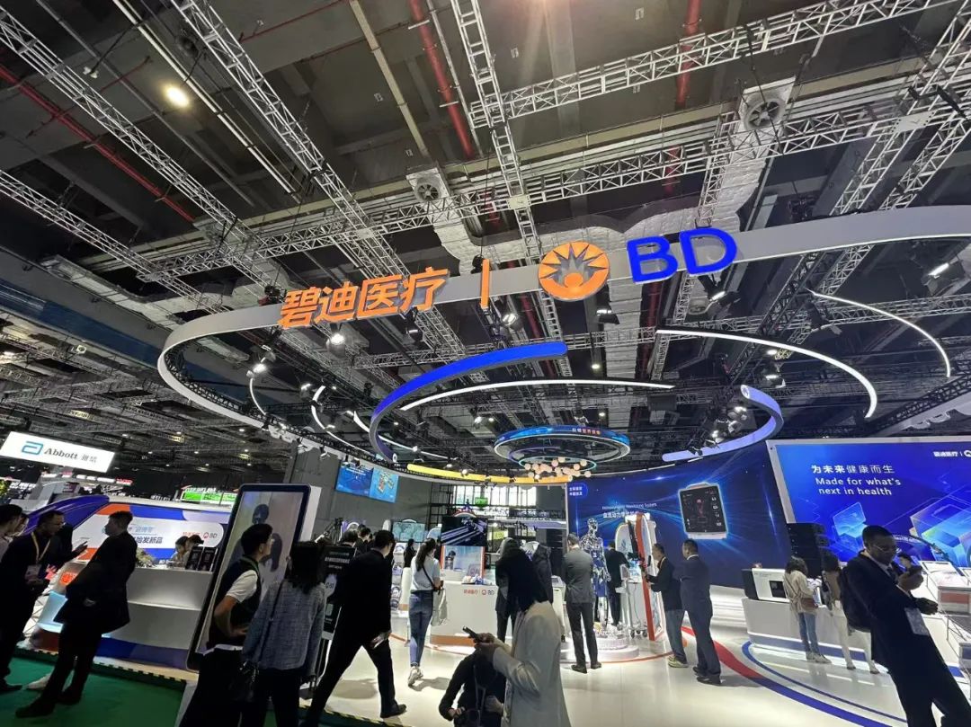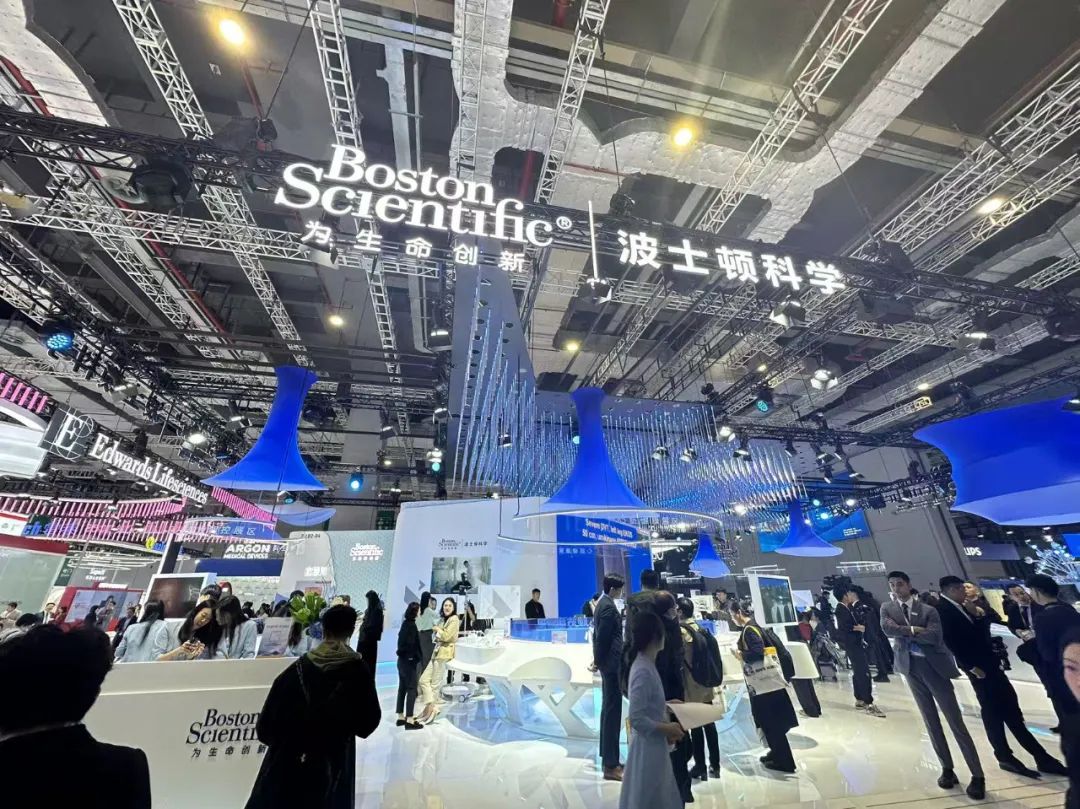 图| 赛柏蓝器械 来源 | 赛柏蓝器械(发自上海) 01 11月5日,第七届中国国际进口博览会在上海开幕。 进博会一直都是全球医疗器械新品首发地,今年的“中国首秀”“全球首秀”仍然是众多展台的关键词。 医疗器械及医药保健展区位于7.1、7.2及8.1号馆,展览面积7万平方米,设置医疗器械、药品、健康营养三大板块及健康养老专区。 展区吸引世界各地260余家企业参展,包括全球十大医疗器械企业、十一家世界500强制药企业。 医疗器械板块集中布局7.1馆,全球十大医疗器械企业集体亮相参展(美敦力、强生、雅培、西门子医疗、史赛克、GE医疗、碧迪、罗氏诊断、飞利浦、波士顿科学),聚焦生命健康创新智能产品及数字化精准解决方案。今年医疗器械板块围绕新质生产力、医疗设备更新、银发经济等热点话题,汇聚一批全球首发、亚洲首展、中国首秀的高精尖展品。 今年“新质生产力”成为创新药械研发、生物医药技术的新重点。一批填补国内市场空白的中国首秀产品即将进入市场,改变相应市场格局。 从今年展品来看,应用场景多元化,下沉基层,全链条扎根本土市场,产品个性化、定制化,聚焦老年人生活痛点,AI赋能、诊疗一体化等成为跨国器械巨头产品更新的高频词汇。 如: 美敦力便携式人工心肺(ECMO),亚洲首展。它打破原有医院内床边使用的限制,可适用于院内、院外多场景,能应用于各种救灾应急前线,让救治工作快速开展,最大程度减少血栓形成风险,保障急症、危重症患者长效生命支持,具备全面监测功能和纯图形界面设计,不受任何语言限制。 GE医疗针对阿尔茨海默病的全链条生态解决方案,全球首发。可实现提早10-15年发现病变可能,并整合治疗领域新药,推动阿尔茨海默病精准诊疗。 波士顿科学旗下减重产品Apollo ESG。这是胃镜下袖状胃成形术(ESG)品类首个且唯一获FDA批准的前沿技术。 02 |