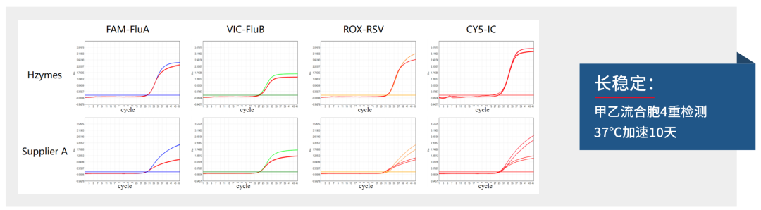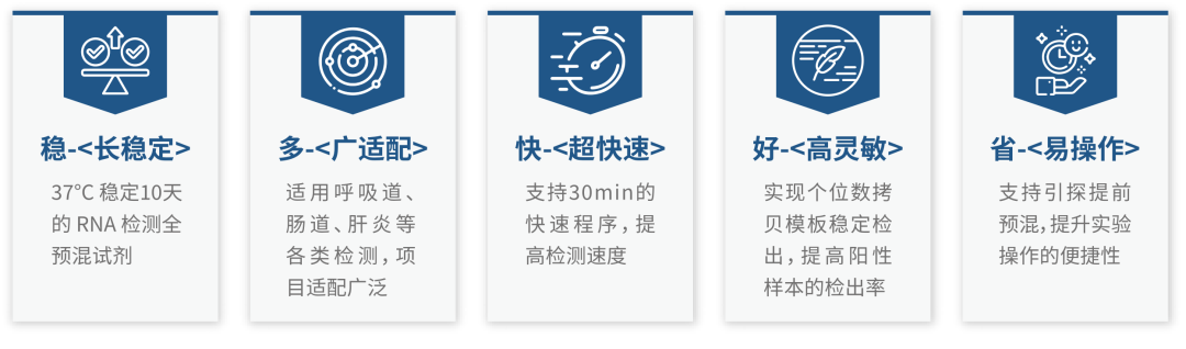 但是,目前市面上并没有一个具有稳定且广泛普适性 RNA 全预混原料。目前行业中仅有极少数企业能够搭建 RNA 全预混项目,但这些试剂加速稳定性仍然具有问题,且仅适配极个别项目,同时搭建的路径要么是舍弃快速检测性能,要么是定制版试剂,不具有普适性。 全预混体系中,除模板外的所有组分(酶、镁离子、dNTPs、引物探针)已经预先混合。长期保存过程中,引物与引物以及引物和探针之间容易产生二聚体或二级结构,导至体系内部出现非特异性扩增,增加了体系复杂性,限制后续主反应进行,并消耗反应所需组分。这会导至加速后扩增曲线荧光强度下降、Ct 值滞后,或者出现 Ct 值大幅提前,大大增加假阳性概率。降低体系中各主要成分的用量虽可一定程度短期提升试剂稳定性,但会影响试剂性能,尤其是在快速检测方面,此方法不可取。 目前的 RNA 全预混主要技术瓶颈在以下 3 点: ● 1. 使用的功能性酶液的活性封闭不够完全。Taq DNA 聚合酶的聚合和切割活性未完全封闭以及逆转录酶低温和室温下的活性未完全封闭导至全预混试剂稳定性出现问题; ● 2. 长期保存中酶液酶活严重下降或者失活,从而导至全预混试剂性能出现问题; ● 3. 全预混试剂加入引物探针后,长期保存或者加速中引物二聚或者引物探针间的二级结构形成,导至体系反应复杂程度提升,从而导至试剂稳定性出现问题。 如何构建一个 稳定且具有广泛普适性 RNA 一管式液体全预混反应液 MIX(简称:RNA全预混) 文末参与【免费试用】 为顺应行业发展趋势解决这一难题,瀚海新酶集中力量研发全预混试剂,在 Taq DNA 聚合酶、热启动逆转录酶、反应体系、耗材等方面,进行充分验证和优化: 1. Taq DNA 聚合酶(抗体修饰) 推进适配全预混的热启动 Taq DNA 聚合酶的研发。确保 Taq DNA 聚合酶的聚合和切割活性被彻底封闭,同时又能在反应时迅速失活; 推进适配全预混的热启动逆转录酶的研发。确保在低温或者常温时逆转录酶的活性基本被封闭完全,同时提高酶液稳定性。 通过DOE的方法,对反应体系进行优化,降低体系引物探针之间的二级结构产生概率,优化低值区曲线形态,同时尽可能提高试剂检出率; 不合适的耗材容易导至酶液失活或者吸附引物探针,瀚海新酶通过对比测试市面上主流的耗材,筛选出适配全预混的耗材清单; 此外,瀚海新酶还对早期二聚体的抑制进行了深入研究,以确保试剂的长期稳定性和优异性能。 同时为了更好地响应客户需求、提升试剂性能和适配性,瀚海新酶建立并验证了包含:呼吸道、血液、肠道、兽用等领域多达上百个靶标的体系和严格的考核标准,以不断优化RNA全预混试剂的各项性能。 达成效果 相关产品及服务 ● 1. RNA 全预混试剂(可立管版本和预分装版本) ● 2. DNA 全预混试剂(可立管版本和预分装版本) ● 3. 全预混的热启动 Taq DNA 聚合酶(抗体修饰) ● 4. 全预混的热启动 MMLV 逆转录酶 同时,瀚海新酶还可提供:试剂定制调优、引物探针定向设计及调优等 CRO 服务。 *活动规则* 1.仅限终端客户参与,同一企业机构仅限参加1次,且不与其他同类型活动同期参与; 2.如申请成功,将在提交后3个工作日内与您取得联系,敬请耐心等待; 3.本活动最终解释权归武汉瀚海新酶生物科技有限公司所有。 如您有任何疑问,欢迎与我们联系 |