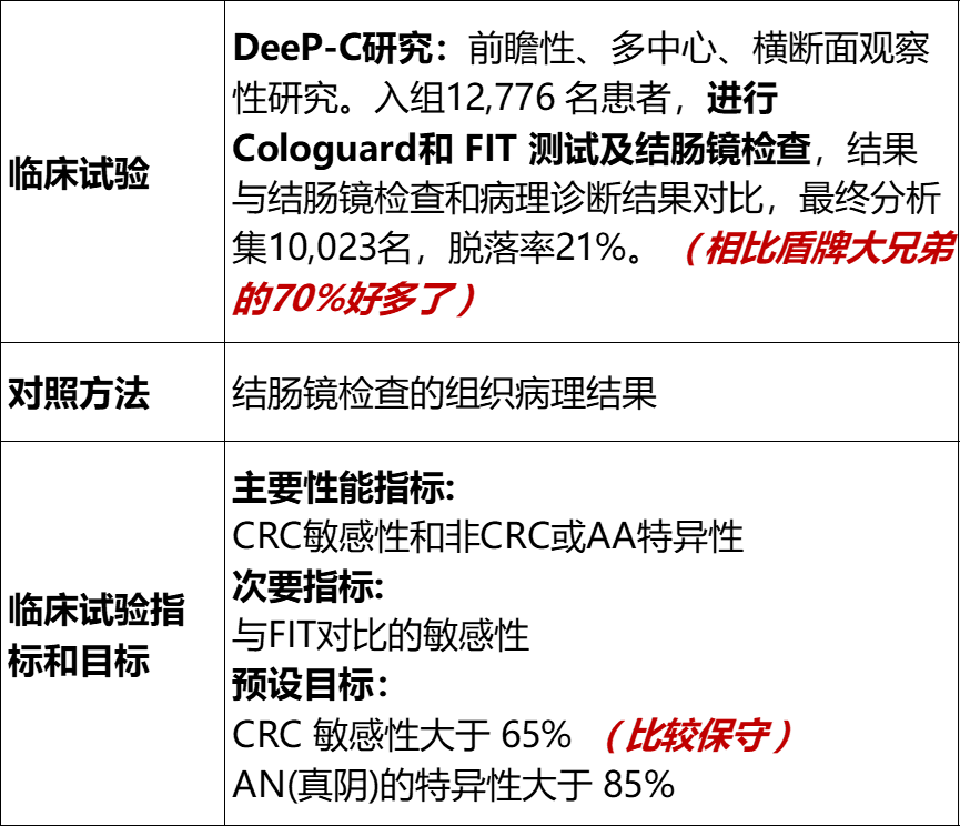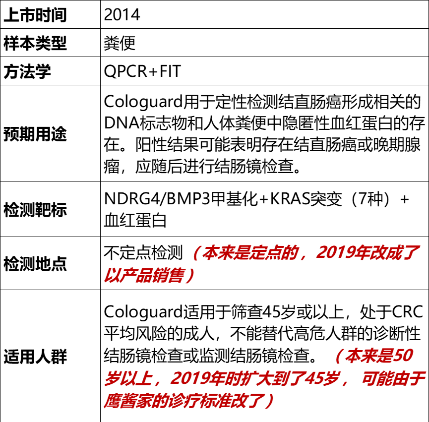 写在前面的话 接着上回,继续看看现在FDA批准的肠癌早筛分子产品的性能如何,上一篇说到guardant health的盾牌产品检出能力有限。(FDA又双叕批早筛了)这可是2024年的产品,10年前Exact Sciences 也有一个爷爷产品Cologuard。当然,最近爷爷升级成了plus,这是后话。 我不禁想知道,在这样一个技术更迭,产品后浪推前浪的时代,跨越10年的时间到底会有什么影响 今日盘点:Exact Science -Cologuard 1 基本信息 2 临床试验 性能比较 之前盾牌在做临床试验的时候,排除标准里设置了不允许受试者曾经检测过跟他类似的产品,并且报了cologuard和Epi proColon的身份证号,与此同时,Colonsense非常不自信的排除了FOBT和FIT-DNA,但是现在还是要被我拉出来营业,着实不知道对比的对不对,有些忐忑。 以下排名分先后 初步结论 1、盾牌大兄弟的决定可能是对的。 2、10年的时间未必会使得经典的产品有多褪色 Cologuard 爷爷plus版本不知道咋样,下回分解 |