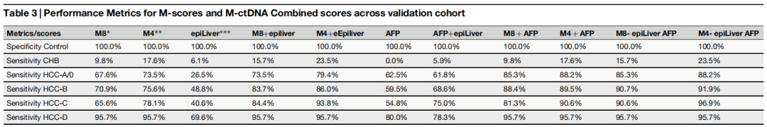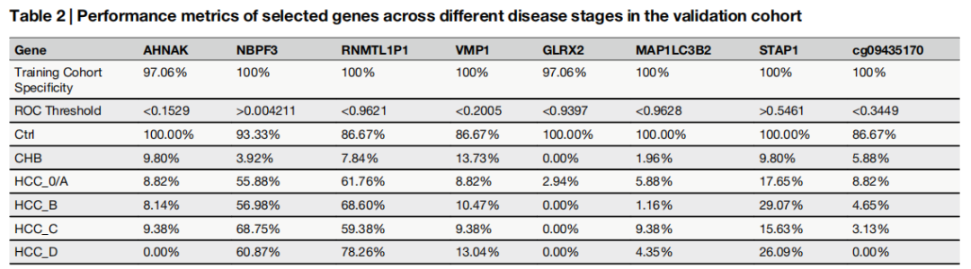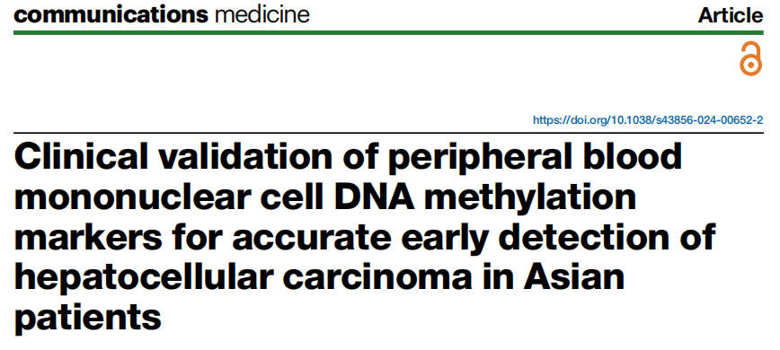 检测循环肿瘤DNA (ctDNA)中癌症特异性DNA甲基化标记物目前被认为是早期检测的首选方法,但该方法存在丰度低和技术复杂性等局限性,这阻碍了其在早期癌症检测中的有效性。外周血单个核细胞(PBMCs)提供了稳定而丰富的DNA来源,可能携带早期HCC的甲基化特征。 近日,杂志communications medicine上发表了一篇题为“Clinical validation of peripheral blood mononuclear cell DNA methylation markers for accurate early detection of hepatocellular carcinoma in Asian patients”的文章。文章表明,将M4评分(基于MAP1LC3B2、NBPF3、RNMTL1P1和STAP1四个基因甲基化水平的评分)与现有的诊断工具(如AFP)相结合,可显著提高早期HCC的诊断敏感性。M4 + AFP在A期的敏感度为88.2%,在所有阶段的敏感度高达95.7%。这些结果强调了PBMC甲基化标志物与当前血清学和血浆标志物结合的潜力,为早期HCC提供了更全面、更有效的诊断方法。 图片来源:communications medicine 主要内容 不同HCC分期基因特异性甲基化谱的比较分析 作者对训练队列中下列基因的中位数甲基化水平进行了受试者操作特征(ROC)分析,以确定每个基因对HCC的鉴别能力:AHNAK 、STAP1 、NBPF3、RNMTL1P1、VMP1、GLRX2、MAP1LC3B2以及cg09435170基因。结果显示,STAP1、RNMTL1P1、GLRX2、NBPF3和MAP1LC3B2在HCC所有阶段都显示出显著差异。VMP1、cg09435170、AHNAK分别在HCC某分期有显著差异 。 在验证队列中,NBPF3在高特异性下,对所有HCC分期中敏感性最高;RNMTL1P1也表现出显著的敏感性,尤其是在早期,但其特异性略低于NBPF3。STAP1、AHNAK和GLRX有高特异性,但在HCC分期中表现出较低的敏感性。其余基因VMP、MAP1LC3B2和cg09435170的特异性和敏感性因HCC分期不同而不同(如下表)。这种基因特异性分析表明,单基因的敏感性是不够的,应该开发一种组合模型。 在验证队列中不同疾病阶段所选基因的性能指标。 图片来源:communications medicine 基因评分的优化以增强HCC分期的区分性能 作者开发了一个HCC早期检测和分期的方法,包括所有8个基因,称为m8评分。结果显示,使用M8评分,对照组与CHB之间无显著差异,而对照组与癌症分期(A期至D期)之间的差异显著,且随着癌症分期的进展,显著性水平的增加(下图A、B)。 作者将M8中的四个重要分类因子(NBPF3、RNMTL1P1、MAP1LC3B2和STAP1)来创建M4评分,并比较了M8和M4评分的表现,并建立100%特异性和最高灵敏度的阈值(图B)。结果显示,在验证队列中,M8和M4评分在对照组中均表现出100%特异性,且M4评分普遍优于M8。 甲基化评分的ROC分析。 图片来源:communications medicine AFP及其与epiLiver、M8和M4评分的整合 作者评估了PBMC M4和M8评分和AFP与epiLiver的联用,是否提高了HCC检测的敏感性。总体而言,PBMC M评分与epiLiver和AFP的联用显著提高了所有HCC分期的敏感性,同时保持了高特异性,特别是在CHB患者中。在各种组合中,M4-epiLiver+AFP和M8-epiLiver+AFP在HCC晚期表现出最高的敏感性,M4 +AFP在早期高度敏感(如下表)。总的来说,将M4或M8评分与epiLiver和AFP标志物或两者结合,可显著提高HCC的诊断,提高疾病早期和HCC所有阶段的检测能力。 M评分和M-ctDNA综合评分的性能指标。 图片来源:communications medicine M4和M8评分在HCC 与乳腺癌和前列腺癌比较中的特异性 为了验证M4和M8评分检测HCC的特异性,作者将M4和M8评分应用于来自前列腺癌和乳腺癌患者的PBMC的DNA甲基化数据。结果表明,虽然AHNAK、STAP1和cg09435170位点在乳腺癌(BrCa)和对照组之间显示出显著的甲基化差异,但差异不明显。其他检查的位点没有达到统计学意义。前列腺癌中的AHNAK、STAP1、RNMTL1P1、VMP1和MAP1LC3B2,在与健康对照个体比较时,没有发现统计学意义。 总结与讨论 作者评估了PBMC衍生的甲基化标志物在HCC中的诊断潜力。M8和M4评分与epiLiver和AFP的结合可显著提高早期HCC的诊断敏感性。M4+epiLiver评分在A期HCC的敏感性为79.4%,而M4联合AFP在所有阶段的敏感性提高到88.2-95.7%。结果突出了结合cfDNA甲基化和PBMC DNA甲基化的诊断优势。通过对每个生物标志物集保持100%的高特异性阈值,确保诊断方法的稳健性和可靠性的同时提高了灵敏度。 使用白细胞而非cfDNA的明显优势在于,血浆中(cfDNA)极其稀缺,量化白细胞DNA中DNA甲基化面临更低的技术挑战。研究的局限性在于参与者的数量相对较少,可能会影响结果的准确性和可靠性。此外,组间的年龄差异以及该研究仅在孟加拉国进行,可能会限制对其他人群的适用性。在更大的异质队列中对已确定的甲基化标记进行更广泛的验证是必要的。 |