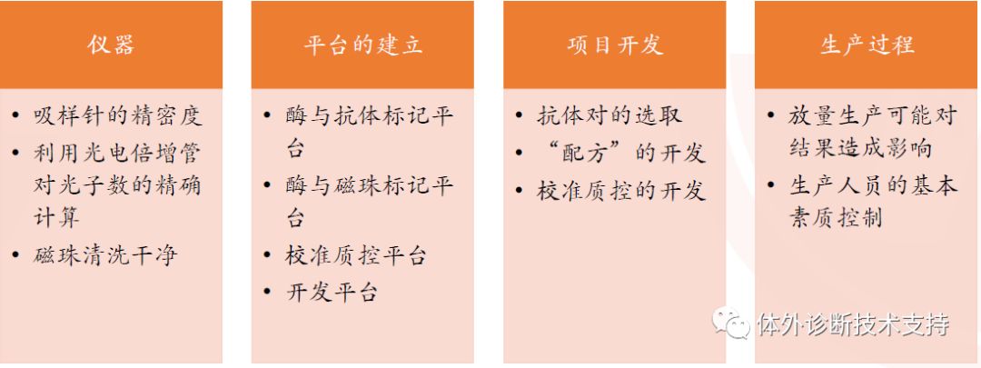 样本中与被检测检测抗原/抗体结构类似的物质会对结果产生较大影响; 原理样机、磁珠-抗体标记平台、酶-抗体标记平台、试剂开发平台、校准质控开发平台