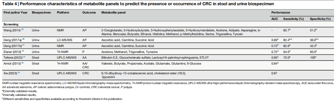 结直肠癌(CRC)是全球癌症相关死亡的第二大原因,预计到2021年将有190万例病例和90.4万例死亡。CRC通常从癌前病变缓慢发展为恶性肿瘤病变,为了早期发现结直肠癌及其前体,已经开发了各种筛查方式,包括结肠镜检查或粪便血液检查。虽然结肠镜检查被认为是早期发现的金标准,但它是侵入性的,依从性低。粪便血液检查是非侵入性的,但对早期结直肠癌和结直肠癌前体的敏感性有限。进一步的非侵入性方法的发展,提高可接受性,可及性和性能将是非常可取的。近年来,代谢组学已成为一种有前途的癌症筛查方法,包括CRC。代谢组学涉及对生物体液、细胞和组织中的小分子代谢物的系统研究,其在癌症生物标志物发现领域的潜在应用研究正在迅速扩大。 近日,杂志npj Precision Oncology上发表了一篇题为“Potential of pre-diagnostic metabolomics for colorectal cancer risk assessment or early detection”的综述文章。本系统综述的目的是评估诊断前样本中CRC或其前体代谢物生物标志物的现有证据。文章强调了代谢物panel的巨大潜力,然而,分析方法的差异和缺乏标准化的验证过程强调了方法统一的必要性。通过标准化技术,确保彻底的验证,并检查不同CRC阶段的代谢变化,代谢组学可能有潜力有效地纳入临床实践,有可能改变CRC筛查策略,以适应个性化和精准医疗的新兴焦点。 图片来源:npj Precision Oncology 主要内容 研究特点 截至2023年12月30日发表的26项关于代谢物生物标志物预测性能的研究被纳入本系统综述。研究结果包括14项CRC研究,2项结肠癌研究,2项腺瘤研究,4项息肉研究,2项腺瘤和息肉联合研究,2项腺瘤和CRC联合研究。研究中使用的生物标本主要包括血液,尿液以及粪便。用于代谢组学分析的技术主要是液相色谱-质谱(LC-MS)和质谱与不同技术的组合。 单个代谢物的性能 在纳入的研究中,有一半报告了单个代谢物的性能,11项研究报告了一个代谢物panel的性能。单个代谢物研究报告了总共101种代谢物的显著相关性(如下图)。在与CRC负相关的59种代谢物中,76%是脂质或类脂质分子,主要是烷基酰溶血磷脂酰胆碱、磷脂酰胆碱和鞘磷脂。在42个与CRC正相关的个体代谢物中,67%是脂质和类脂分子,主要是胆汁酸和脂肪酰基肉碱。血浆胆汁酸,包括糖胆酸、牛磺胆酸、糖鹅去氧胆酸、牛磺酸去氧胆酸、糖去氧胆酸和牛磺酸去氧胆酸,在两项大型队列研究中被报道与CRC呈正相关。这可能反映了这些胆汁酸在癌症发展中至关重要的细胞功能中的重要作用,如细胞膜完整性、能量储存和信号传导。 对于CRC前体,有4种代谢物(C18:2-c亚油酸、甘氨酸、C36:3磷脂酰胆碱缩醛磷脂和苯乙酰谷氨酰胺)和5种代谢物(omega-6多不饱和脂肪酸、反式脂肪酸、蛋氨酸亚硫酰/蛋氨酸比、C18:1鞘磷脂和C54:8甘油三酯)分别与CRC前体呈显著负相关和正相关。 具体见原文表2,显示了CRC及其前体的个体代谢物生物标志物。 个体代谢物与CRC风险之间的关联。 图片来源:npj Precision Oncology 代谢物组panel的性能 原文表3显示了基于血液的生物标志物panel的性能,其中最有效的panel的AUC达到1.0,灵敏度和特异性为100% 。该panel由26种代谢物组成,并使用了机器学习方法。原文表4(如下表)显示了粪便和尿液样本的代谢物生物标志物。三个分析粪便样本panel,报告的AUC为0.95,0.94和0.97。使用四种代谢物和血红蛋白水平来区分晚期腺瘤,灵敏度为70%,特异性为100%。对于基于尿液的代谢物组,由18种代谢物组成的panel区分息肉病例和非息肉病例的AUC最高,为0.752,灵敏度为88.9%,特异性为50.2%。另一组包括四种代谢物,以及参与者的年龄、性别和吸烟状况的panel,用于检测腺瘤性息肉,在中国队列中进行外部验证的AUC为0.72,敏感性为82.6%,特异性为42.4%。 预测粪便和尿液生物标本中CRC代谢物panel的性能特征。 图片来源:npj Precision Oncology 代谢物生物标志物研究领域面临着重大挑战 个体代谢物和代谢物组之间的比较揭示了后者作为CRC筛查的筛查工具或风险评估工具具有更大的潜力。相比个体代谢物,代谢物panel的研究显示出良好的预测或诊断能力,表明代谢物panel能更好反映生物系统复杂性,解决疾病异质性,并提供集体代谢改变见解。 代谢物生物标志物研究领域也面临着重大挑战。代谢物的稳定性会随时间和不同的样品采集方法而变化,彻底的独立验证对于降低高估预测能力的风险至关重要。外部验证不仅可证实发现的稳健性,而且还确定了在不同人口统计学或临床环境中的潜在局限性,确保预测模型可以可靠地应用于各种现实世界的场景。 代谢物生物标志物研究的未来方向 未来研究的一个重要领域,即探索癌症进展背景下代谢物生物标志物改变的时间性,风险预测生物标志物可能应用于筛查起始年龄之前的个体,促进风险评估。在CRC进展的不同阶段,代谢物谱可能表现出不同的模式,识别和利用这些细微的代谢组可以提高基于代谢物的诊断的准确性,从而更精确地区分结直肠癌、腺瘤和息肉。 代谢物可从多种生物标本中提取,基于不同生物标本的结果只有部分可比性。在医疗实践中,与血液分析的复杂性相比,尿液和粪便的简单性提供了独特的优势。然而,由于昼夜节律和饮食导至代谢物浓度的变化,需要标准化收集时间和控制营养消耗模式。标准化的样本采集条件,以及仔细确定潜在的非肿瘤相关决定因素,对于确定代谢组学在CRC风险评估或早期检测中的