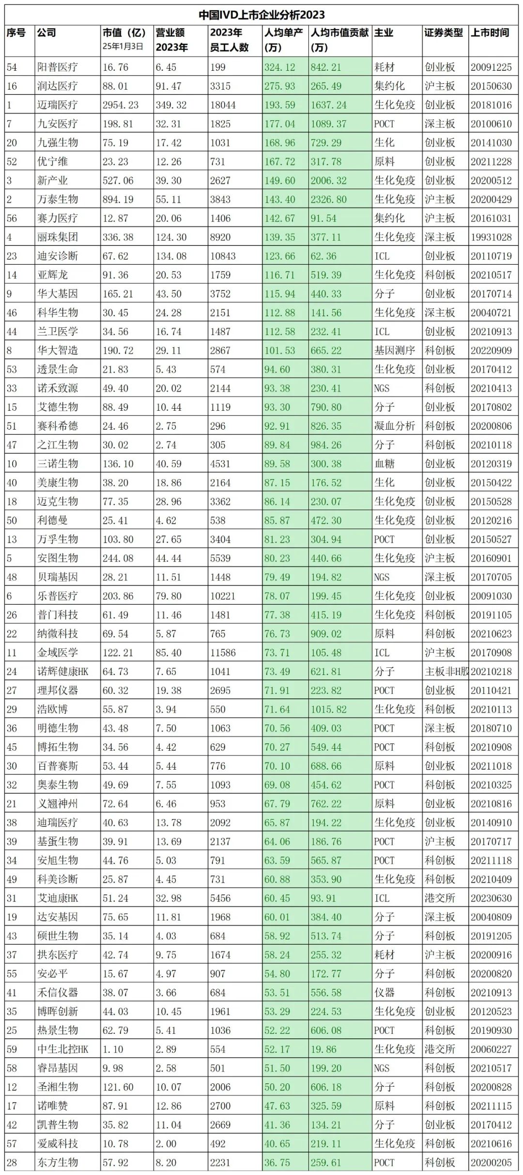 IVD上市企业人均产值出炉!迈瑞193万/人,圣湘50万/人!