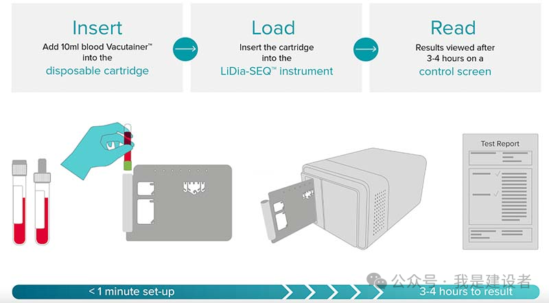 LiDia-SEQ基于半导体测序,使用硅芯片检测DNA模板合成互补链时每次掺入核苷酸所释放的氢离子。可直接处理全血样本,无需进行大量的样本制备。它采用盒式、免提格式,可自动完成整个过程,从原始样本采集到生成可操作报告,适合医院和诊所等不同环境中的非专业操作人员。可在 3-4 小时内提供结果,而传统血培养方法则需要 2-6 天,这种速度对于及时诊断和治疗败血症等危及生命的疾病至关重要。可以识别多种病原体,包括细菌、真菌和病毒,以及检测 AMR 标记物。LiDia-SEQ使用测序进行临床诊断,使得测序更加接近临床诊断。