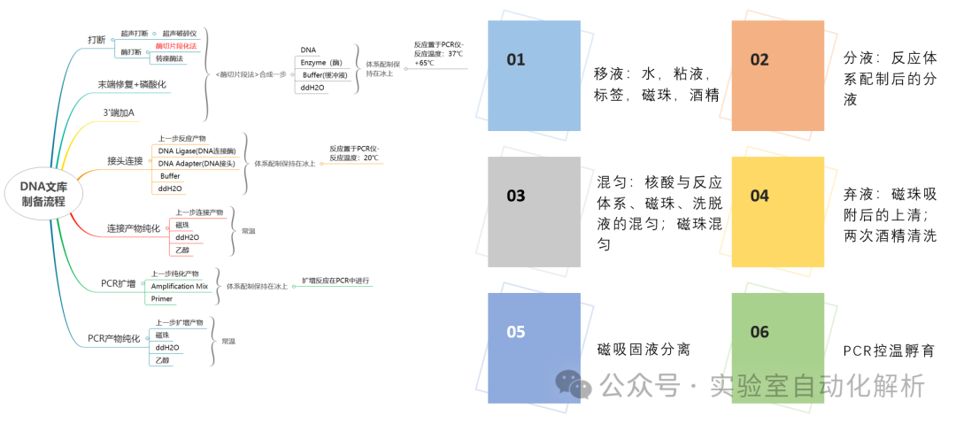 NIPT的检测流程通常涵盖以下步骤:(1)血液样本的采集与保存;(2)血浆分离,即血液样本的前处理,从全血样本中分离得到上层血浆;(3)DNA提取,即从血浆中提取核酸;(4)文库构建,通常遵循全基因组文库的构建流程;(5)文库质控,确保文库的可靠性;(6)Pooling,即将不同的DNA文库按照一定的规则进行混合;(7)上机测序,即将混合后的pooling文库进行测序操作,从而降低测序成本,提高测序通量;(8)生物信息学分析,即对测序结果进行数据分析。这一系列精确而有序的操作确保了检测的准确性和高效性。 在实验室常规处理流程中,主要包括以下几个环节:血浆分离、DNA提取、文库构建、文库质控、Pooling,随后是上机测序和生物信息学分析。在这些环节中,上机测序前的步骤通常被统称为“湿实验”,这些环节对自动化的需求尤为迫切。 血浆分离 血浆,作为抗凝全血经过离心后获得的上层清液,富含纤维蛋白原及其他凝血因子。由于其保留了血液成分的原始状态,并且产量优于血清,血浆在血液成分检测领域得到了广泛应用。这一特性使得血浆成为临床诊断和研究中的重要样本类型。 为了进行血浆中游离核酸的测序,所需的血浆必须高度纯净,避免母体基因组DNA的干扰。因此,在血浆分离过程中,必须严格避免接触白膜层。同时,为了确保实验的顺利进行,所需的血浆量相对较大,通常需达到500μL-1mL以上(因此,在血浆分离和提取阶段,操作通常采用离心管进行。而到了文库构建环节,由于所需体系体积较小,PCR管成为更合适的选择。这一转换过程,从大体积离心管到小体积PCR管的操作,可能会为实验人员带来一定的操作不便)。 一般推荐的血浆分离方法是两步离心法。孕妇外周血在4℃条件下进行1600× 分离完的血浆样本可在-20℃暂存1周,应避免反复冻融,可在-70℃以下长期保存。此步骤操作应双人复核标本信息。正常血浆呈透亮的黄色或淡黄色,无明显溶血;如有严重溶血或颜色异常等情形,须登记注明标本状态并重新采血。 痛点分析 在血浆分离过程中,为确保游离核酸测序结果的精确性,必须获得高度纯净的血浆,避免母体基因组DNA的污染。这一过程要求操作人员极为细心,严格避免触及白膜层,这是一项对技术熟练度有较高要求的专业操作,对于初学者而言,具有一定的挑战性。 自动化解决方案 在当前自动化血液样本组分分装领域,已知的有Hamilton EasyBlood高分辨成像血液分装系统,它专长于对离心后的全血样本进行血浆和白膜层的自动识别与分装。此外,Hamilton EasyBlood系统具备与自动化开盖机和二维码阅读模块(Hamilton LabElite IDCapper)的无缝整合能力,能够实现血液样本管条码识别、分层界面识别、吸取、分装、留样以及开关盖等操作的全面自动化。 这款设备我尚未亲自体验,非常欢迎那些已经使用过的朋友们留下您的宝贵意见,分享您的使用体验。 在处理大批量样本时,人工开启样本管盖的操作不仅繁琐,而且极为耗时。因此,采用自动化仪器进行样本管的自动开盖,能够显著提升工作效率,成为更为理想的选择。另外,自动化操作流程中,将血浆直接分装至深孔板,可简化后续的提取步骤,提高实验操作的便捷性和效率。尽管如此,剩余的样本仍需分装至EP管中,以便进行妥善保存。 DNA提取 DNA提取技术多样化,在市场上广泛应用的提取方法主要有磁珠法、硅胶膜离心柱法等。其中,磁珠法在核酸提取过程中表现出较高的自动化兼容性,使得操作更加便捷和高效。 正如新型冠状病毒肺炎诊疗中新型冠状病毒核酸检测通量高、时效性要求高的特点,对核酸提取技术提出了新的要求——高效、便捷、大通量,原有的手工提取核酸的方法,已经很难满足大规模、高通量的实验要求,在这种背景下,自动化核酸提取应运而生。 磁珠法自动核酸提取技术已达到高度成熟,根据移液特点主要分为磁棒法和移液法两种类型,前者转移的是磁珠,后者转移的是液体。 磁棒法自动核酸提取仪相对应用较多。以ThermoFisher KingFisher Flex系统为例,该设备利用特质的一次性磁套和磁棒进行操作,每批次能够高效处理24至96个样本。 操作流程包括将样本与功能化磁珠及试剂混合后,均匀分配至板孔中。在启动运行时,系统会自动装载磁套。仪器通过磁力作用从溶液中捕获磁珠,随后将其精准释放至含有下一步分离所需试剂的板孔内。这种磁珠的收集与转移机制,确保了洗涤过程的高效性、洗脱步骤的快速性以及整个处理流程的顺畅性。 相对于移液法,磁棒法的优点在于:(1)每一步的液体不会残留,因为磁棒只带走磁珠,然后转移到下一个步骤相应的反应孔中;(2)其编程简单,易维护,机器设备成本更低。 缺点就是不能将手动法磁珠提取试剂直接拿来使用,而需要根据机器特点优化试剂操作。 移液法自动核酸提取仪主要通过移液工作站来实现,如Beckman, Tecan, Hamilton等设备,它利用移液器精确转移液体,以完成核酸的分离与纯化。 相较于磁棒法,移液法的优势体现在:(1)移液过程中有效避免了液体滴落导至的交叉污染;(2)兼容多种磁珠法核酸提取试剂,几乎所有适用于手工操作的试剂均可在该类设备上使用。 然而,这种技术也存在一些不足之处:(1)容易在设备中残留废液,残留的洗涤液中的盐分和乙醇/异丙醇可能会影响后续的洗脱效率和PCR反应的成功率;(2)操作时间相对较长;(3)需要专业的编程和维护,导至设备成本较高,同时移液