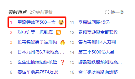 1月13日晚间,甲流特效药500一盒的话题登上热搜,成为广大网友关注的焦点,近期随着甲流的肆虐,感染人数快速增多,流感抗病毒药物近期持续热销。其中,抗流感新药玛巴洛沙韦近日被指在多地缺货,价格疯涨到300-400元/盒。