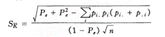 在诊断试验中,一种新的体外诊断试剂通常与金标准或已上市同类产品进行一致性比对,以评价两种检测方法结果是否一致。通常,在统计方法选择上,我们会优先选择Kappa一致性检验。Kappa是用来描述定性(分类)任务中标注一致性的统计量。 Cohen's Kappa和Fleiss' Kappa是比较常见的Kappa,Cohen's kappa 和 Fleiss' kappa 是两种以人名命名的统计学方法。前者只能用来评估两位观察者之间的一致性,如评价考核试剂检测结果与已上市同类产品的一致性,后者可以衡量多个观察者对多个对象进行分类时的一致性程度。在IVD临床试验中,主要使用Cohen's Kappa进行一致性分析,因此,本文将重点介绍。 1.Cohen's Kappa 1960年Cohen等发表了"A coefficient of agreement for nominal scales"一文,首先提出用Kappa值作为评价一致性程度的指标。他提出的Kappa标准误计算公式(1960年Cohen)为: 后来,有学者提出以上标准误计算公式有误,如Everitt,1968年试图修正,但他的计算公式也同样存在错误。 直到1969年,Fleiss, Cohen 和Everitt三大巨头强强联合,发表了"Large Sample Standard Errors Of Kappa and Weighted Kappa"的重要论文,对标准误计算公式进行了修正。在论文中根据原假设不同,Kappa值标准误采用不同计算公式。如原假设为κ = 0,标准误计算公式为: 2.Kappa值标准误计算现状 值得一提的是,目前国内关于Kappa值标准误的计算也基本上分为两派。一派采用Cohen(1960)计算方法,该方法计算简单,易于被大家所接受;一派采用Fleiss(1969)计算方法。但通常来说统计专业人员更倾向于选择Fleiss(1969)计算方法。 在《对诊断一致性kappa系数及评价指标的探讨》一文中,Kappa系数的标准误Sk也被写成: 实际上,这种写法与前者是一致的,只不过前者使用频数,后者使用频率进行计算。 在《Kappa一致性检验在检验医学研究中的应用》一文中,Kappa系数的标准误Sk被写成: 总之,以上两种方法目前均有在使用,具体使用哪种方法读者可自行选择。 参考文献 [1] Cohen, J. (1960). A coefficient of agreement for nominal scales. Educational and Psychological Measurement, 20, 37–46. [2]Fleiss, J. L., Cohen, J., & Everitt, B. S. (1969). Large sample standard errors of kappa and weighted kappa. Psychological Bulletin, 72(5), 323–327 [3]闫岩,华琳,张建. 对诊断一致性kappa系数及评价指标的探讨[J]. 中国卫生统计,2007,24(3):313-315. [4]夏邦世,吴金华. Kappa一致性检验在检验医学研究中的应用[J]. 中华检验医学杂志,2006,29(1):83-84. |