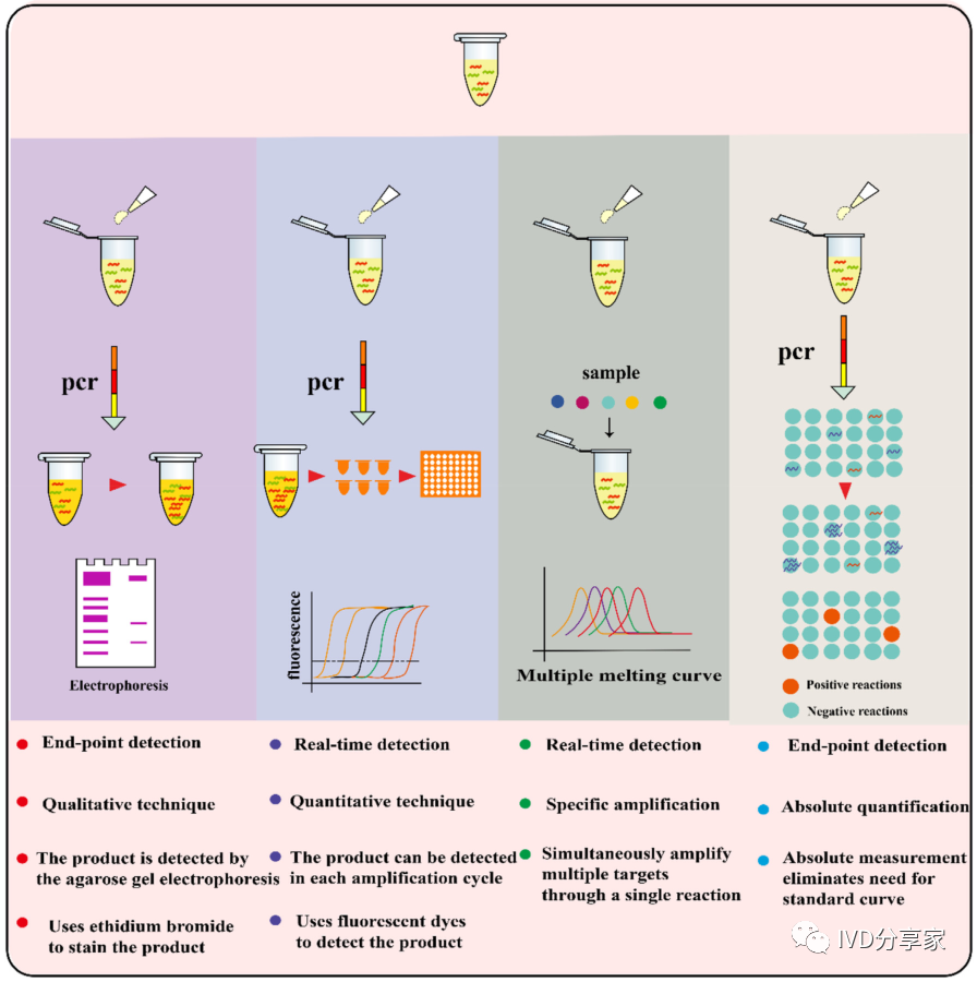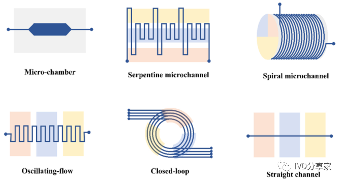 微流控PCR芯片概览 2、结合qPCR的微流控芯片 3、结合mPCR的微流控芯片 4、结合dPCR的微流控芯片 ddPCR技术将PCR反应液分成大量的纳升至皮升,同时在这些小液滴中进行PCR扩增,分析扩增后液滴的荧光信号,计算出目的基因的拷贝数。以液滴为反应单元的PCR系统系统结构更简单,成本更低,结果更准确。Chen等人使用水相通过微通道阵列分散成稳定的油包水乳液液滴,并进行高动态范围的dPCR反应。事实证明,这种经济有效的方法不仅节省了复杂的微流控设备和控制系统,而且大大抑制了材料损失和交叉污染。此外,Wang等人使用压缩空气驱动流体产生液滴,无需外部微阀即可实现实时监测。该系统只需要一个恒温加热器即可实现dPCR所需的稳定热循环,实现每个热循环中液滴荧光的实时检测,简化了传统的dPCR过程。 在现有的一些ddPCR系统中,液滴发生器产生液滴后,需要将液滴转移到其他模块进行扩增和检测,可能会导至转移过程中液滴丢失,结果不准确。在转移过程中存在交叉污染的风险。如张等人采用喷墨打印技术,在油相中产生单分散液滴,然后稳定分散到毛细管中,简化了乳化过程,大大减少了试剂的损失,且生成的液滴在不同温度下是连续的。该方法应用于携带目标DNA的阳性液滴,并利用该系统对三个数量级不同数量的DNA进行定量评估。Wei等人开发了一种新型 dPCR 芯片,它将液滴产生、液滴阵列自组装、PCR 扩增和荧光检测集成到一个设备中。它的特点是制造成本极低、定量能力强且有小型化的潜力,满足DNA分子定量标准。 随着微流控技术的成熟,基于微流控技术的dPCR技术发展迅速。两者结合可以避免繁琐的样品分散操作,在短时间内自动形成一大型的独立反应单元,通量高,提高了准确度和灵敏度。与传统的qPCR技术相比,dPCR技术具有极高的灵敏度、精密度和特异性,特别适用于细微的拷贝数变异、稀有基因突变和核酸绝对定量。广泛应用于医疗、微生物检测、食品安全等领域。 微流控PCR芯片的结构类型 不同样式的微流控PCR芯片的示意图。红色表示变性,蓝色表示退火,黄色表示延伸 1、Micro-chamber PCR chips 3、Spiral microchannel PCR chips 4、Oscillating-flow PCR chips 5、 Closed-loop PCR chips 6、Straight channel PCR chips 7、Others PCR chips 微流控PCR芯片的应用 随着微流控技术的快速发展,微流控PCR芯片正朝着结果简单、功能集成、便携和一次性的方向发展。微流控PCR芯片现在被用于识别病原体、核酸病毒和基因突变,以及预测和诊断疾病和检测低浓度样品。COVID-19正在席卷全球,尤其是现在。我们的共同目标是创造既便携又集成的核酸检测技术。微流控PCR芯片技术的进步,赋予了生物、医学等领域巨大的应用价值。 1、与病原体检测相关的微流控PCR芯片 2、与核酸病毒检测相关的微流控PCR芯片 3、基因突变检测相关的微流控PCR芯片 4、与疾病预防和诊断相关的微流控PCR芯片 5、与DNA甲基化检测相关的微流控PCR芯片 6、与低丰度样品检测相关的微流控PCR芯片 结论和未来展望 尽管典型的PCR反应过程简单明了,化学扩增效果明显,但对硬件条件的依赖仍然是PCR广泛使用的一个重要障碍。提高热循环率、最小化设备和使用更少的化学品需要进一步开发。传统的台式热循环仪仪器体积大,试剂消耗大,导至系统热容量增加,进而降低了温度转变速率和反应速率。这些缺陷可以通过PCR设备的小型化来解决。近几十年来,微流控PCR设备的发展有了很大的进步,改变了传统的核酸扩增PCR方法体积大、成本高、耗散大、易污染和降解等问题。热传导速度加快,提高了热循环的效率。 微流控PCR已与多种检测方法相结合。其中,荧光检测是最灵敏、最方便的检测方法。开发低成本、高通量、高速的检测方法是未来研究的重点。系统集成和自动化可以减少手工操作、减少交叉污染及试剂和样本消耗。在COVID-19的趋势下,集自动化和小型化于一体的检测平台是未来的发展方向。 本综述讨论了PCR技术(PCR、RT-PCR、dPCR、mPCR)与微流控芯片上各种通道结构的结合,并介绍了相关的检测方法。还总结了一些已报道的生物分子分析应用,由于芯片加工制造平台还不够普及,微流控PCR技术设备仍需要更好的改进。核酸提取、扩增和检测的一体化将是未来研究的重要方向。 本研究得到国家自然科学基金面上项目(81973569, 21727814, 21621003, 82130113)、四川省科技厅重大专项(2019YFSY0046)、四川省科技厅区域创新合作项(2020YFQ0032)等资助。 原文链接:https://doi.org/10.1016/j.trac.2022.116737 |