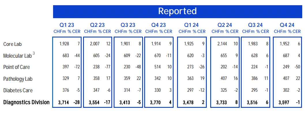 ▲罗氏诊断2024年细分业务营收