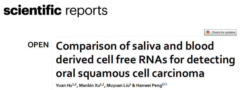 近日,杂志Scientific reports上发表了一篇题为“Comparison of saliva and blood derived cell free RNAs for detecting oral squamous cell carcinoma”的文章。作者研究了cfRNA转录组学在OSCC中的价值。结果显示,在唾液样本中,OSCC组CLEC2B显著上调,而DAZL、F9和AC008735.2显著下调。作者还在唾液样本中发现了OSCC组与其他正常组之间不同的免疫浸润特征,提示OSCC患者口腔环境存在免疫紊乱。这些发现强调了基于唾液的cfRNA在早期、非侵入性OSCC诊断中的潜力。然而,需要进一步的研究来验证这些发现并评估其临床适用性。