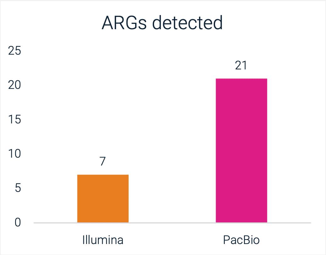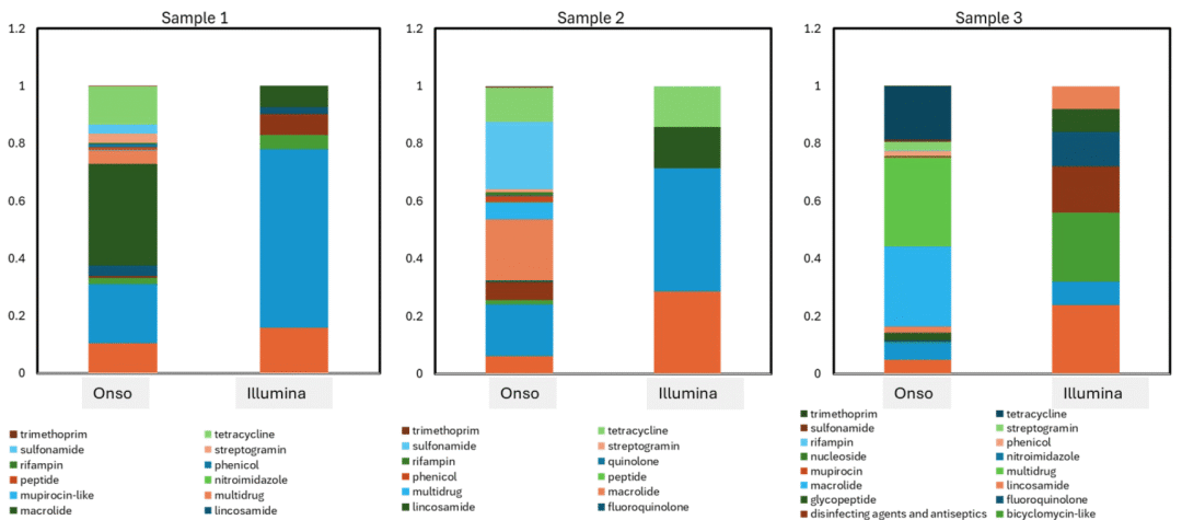 十多年来,Q30一直是二代测序(NGS)用来衡量测序质量的标准,尽管存在固有的局限性,但这一标准一直被认为“足够好”。PacBio Onso 二代测序仪的出现重新定义了这一标准,其碱基质量分值为Q40+,即碱基错误率为 1/10,000 甚至更低。 Onso系统是一款灵活的台式NGS测序仪,通过独特的结合测序 (SBB™) 技术提供出色的准确度(90%的碱基Q40+)。其15倍的准确度提升转换为更高的变异检测灵敏度和更少的测序深度需求。 测序原理 与SBS的一个关键区别是,荧光标记的碱基不被合并到DNA链中,而是在信号捕获后被洗掉。SBB化学分离了测序过程的结合和后续延伸步骤,从而消除了“分子疤痕”引入的错误。 测序模式 Onso的优势 比传统SBS测序仪高15倍的准确度 Onso独特的SBB技术提供了卓越的准确性和灵敏度,可以自信地识别其他短读长测序平台遗漏的罕见变异。 更低的测序深度需求 当准确度为Q30时,一些应用如液态活检研究,所需的测序深度较高。Onso系统的Q40+性能,在采用比SBS低4倍的读取深度下,也可提供高质量的结果。 跨越基因组上的难测区域 Onso近乎完美的测序能准确表征低复杂度、高度重复区域,以助力获得更多更准确的基因组信息。 无缝兼容现有的短读长生态系统 Onso系统提供更高准确度的文库制备方案,支持各种常见的短读长测序应用。此外,通过简单的库转换过程,Onso也支持第三方样本和文库制备方案。Onso 输出的FASTQ文件可确保与下游二级和三级短读长测序分析工具的兼容性。 应用举例——液态活检 1.灵敏度更高 SBB(Onso系统)在采用与SBS相同的测序覆盖度(6000x)下,对低频等位基因变异的检测灵敏度提升近2倍(图1A);SBB在采用比SBS低4倍的测序覆盖度(6000x vs 24000x)下,其对低频等位基因变异的检测灵敏度还更高(图1B)。添加基于UMI的重复数据去除还可以进一步提高Onso性能 (图1A中的SBB vs 图1B中的SBB)。 图1. 通过对10个基因中跨了5个不同等位基因变异频率(0%(WT),0.05%,0.1%,0.25%,0.5%)的已知变异进行检测,来对SBB和SBS测序进行变异检测性能进行测试。(A) 6,000×SBB UMI- vs 6,000× SBS UMI-, (B) 6,000× SBB UMI+ vs 24,000× SBS UMI+。 2.假阳性更少 由于更高的Q值意味着更高的信噪比,因此Onso系统的Q40+准确度能够以更少的混淆错误实现更自信的变异检测。SBS测序中的测序错误使得几乎不可能从噪声中区分变异(图2A),而Onso系统上的测序使真正的变异更清晰(图2B)。 图2. SeraCare ctDNA complete mutation mix中NRAS Q61R变异检测的SBS (图A)和SBB (图B) IGV视图。 应用举例——病原检测及抗微生物药物耐药性监测 废水监测可用于监测新的和复发的病原体及其随时间变化的流行情况和新出现的变体。而无需培养的测序方法的进步,尤其是通过 Onso 系统提供的高精度宏基因组测序,为进一步提升这一实践打开了大门。 抗生素抗性基因(ARG)可使细菌逃避某些类别抗生素的作用。全面检查这些基因需要高度准确的测序技术,以正确识别抗性基因及其耐抗生素的类型。 PacBio 和 Zymo Research 合作进行了一项废水监测研究(在2024年的 ASM年会上做过相关介绍)。该研究使用 Zymo公司的 Quick-DNA/RNA Water Kit 处理真实的废水样品,在PacBio Onso系统和Illumina NextSeq 2000系统上分别测序,正面比较了它们在病原检测、抗微生物药物耐药性(AMR)监测和功能分析方面的表现。 两者均采用Zymo分析流程,与NextSeq 2000系统相比,在Onso系统上所有的样本各个分类水平上均获得了更多的分类群(表1)。这意味着,PacBio SBB比SBS检测到更丰富的微生物多样性(图3)。 表1. 使用 PacBio SBB和Illumina SBS 在各个分类水平获得的分类群的数量 图3. 微生物群落分析,属水平的Shannon's Diversity Index。(紫红色代表Onso SBB,橙色代表NextSeq SBS) 在两个测序系统之间,Onso 平台生成了更多针对多种抗生素类别耐药性相关的reads(表2)。 表2. 将Onso 和 NextSeq 测序系统上产生的每个样本的reads分配到 AMR 类别。 当通过相对丰度进行评估时,Onso 系统所揭示的更丰富的多样性得到更明显的体现。Illumina SBS技术只能在每个样本中检测到少数几种 AMR 类别,而PacBio Onso 系统却显示出更广泛的 AMR 类别(图4)。这一点也通过Onso 系统检测到的 ARG 数比 NextSeq 更多得到证实(图5)。由于许多 ARG 都存在于可传播给人类和在人类之间传播的致病细菌中,这些发现有可能直接为公共卫生决策提供参考。 图4. 每个样本的抗生素耐药性类别在 Onso 和 Illumina 测序系统之间的相对丰度呈现。 图5. 采用 Zymo工作流程,分别使用 Illumina SBS和 PacBio SBB测序检测抗生素抗性基因 (ARG) SBB的超高准确度为研究人员提供了必要的工具,以用于监测和预测疫情、优化公共卫生管理和水处理策略以及为更好的公共卫生政策提出建议。 无论您是关注临床研究、农业基因组、环境监测还是其他领域,Onso系统均能为您提供超高的准确度(≥90%的碱基Q40+)、可扩展性和效率。其应用广泛,涵盖肿瘤基因组学、全外显子测序(WES)、微生物组研究、单细胞测序等。尤其可以为一些需要高灵敏度变异检测的应用如液体活检微小残留病灶(MRD)检测、抗微生物药物耐药性监测、基因编辑实验中脱靶分析等带来突破性的发现。 |