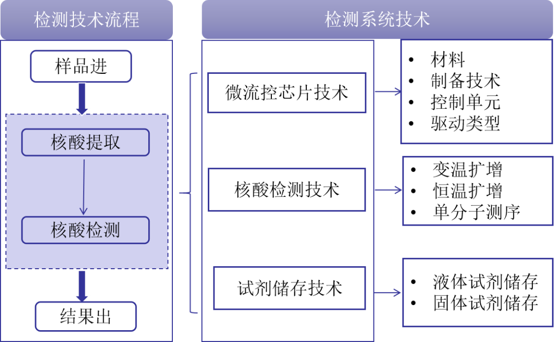 来源:iLABMED《智能实验医学(英文)》 作者:任珊珊1,2,3 刘东来1,2,3★ 许四宏1,2,3★ 整理:小桔灯网 由中检院专家撰写发表于iLABMED的传染病分子POCT领域最新的综述,内容涵盖了微流控技术在传染病诊断中的应用、核心组件介绍、关键技术分析以及未来发展方向和面临的挑战。 • 微流控芯片大揭秘:文章详细介绍了微流控芯片的材料选择、制备工艺、控制单元与驱动类型,让你对这一核心组件有全方位的了解。 • 核酸检测技术全解析:从变温扩增到等温扩增,再到单分子测序,文章深入探讨了各种核酸检测技术的原理、优势与应用。 • 未来展望与挑战应对:不仅展望了微流控技术在分子POCT领域的美好前景,还深入分析了标准化过程中面临的挑战,并提出了相应的解决思路。 无论是医疗领域的专业人士,还是对科技创新感兴趣的读者,这篇文章不仅让你了解到微流控技术在核酸POCT领域的最新进展,还能提供关于未来发展方向和解决潜在问题的思路。 以下是中文翻译: 即时检测(point-of-care testing,POCT)又称“床旁检测”、“近患检测”,是一种不受实验场地和实验条件限制,无需在实验室环境中对样本进行复杂处理的检验方法。[1]POCT最初主要是基于胶体金、免疫层析、干化学和免疫荧光等免疫技术,操作比较简单。受新冠等重大突发传染病的影响及技术的快速发展,传染病的分子诊断需求出现了爆炸式的增长。但传统的分子诊断由于集成度较低,平台搭建对人员、场地和设备的要求都很高,使得一般医院的检验科较难开展,因此市场急需集成化、自动化的分子POCT系统。 目前全集成式核酸分析系统依据应用场景主要分为两大类,第一类是面向医疗机构的高通量样品检测需求的全自动核酸检测工作站,主要是利用机械臂来实现检测分区。但这类系统试剂的生产和使用成本较高,工作站占地较大,限制了其在基层医疗机构的大规模应用;第二类是面向现场即时检测的便携式全集成分子POCT系统,这类系统将传统的分子实验室检测方法缩小到便携式设备上,能够真正意义上做到“样本进,结果出”。[2]POCT系统具有灵敏度高、试剂需求量小、混合速度快、周转时间短、相对易用等优势,在传染病诊断领域受到广泛关注。[3-4] 现阶段大部分商业化分子POCT系统是基于微流控(Microfluidic)技术,在微米级别流道上对微流体或微反应体系进行精准操控与分析检测,由微流控芯片、配套的试剂、仪器及分析软件共同组成(图1)。微流控技术是20世纪90年代提出的一种能在微米级别孔道中操控微液滴流动的技术,该技术可以把整个实验室的功能,包括样本处理、分离、反应、检测等复杂的流体操控系统与功能单元模块集成在几平方厘米的芯片上,具有自动化、集成化、微型化等特点。[5-7] 图1 分子POCT系统原理 微流控芯片(microfluidic chip),又称芯片实验室(Lab-on-a-chip),可将样本处理、核酸扩增、电子自动化和信号监测等多个工作单元集成于几平方厘米大小的芯片上实现“样本进,结果出”。微流控芯片是整个一体化分子POCT系统的核心组件,其设计开发需要考虑很多因素,包括产品材料、制备工艺、流体驱动类型和控制单元等,这些要素直接决定了分子POCT系统的性能。 2.1 微流控芯片材料 材料是设计微流控芯片的载体,不同功能的实现需要利用材料的不同特性,如硬度、导电性、亲疏水性、透光性、抗腐蚀性、加工工艺的可行性以及生物相容性等方面的差异。[8]目前可供选择的芯片材料包括以硅、玻璃为代表的无机材料,以聚二甲基硅氧烷(polydimethylsiloxane,PDMS)和聚甲基丙烯酸甲酯(Polymethyl methacrylate,PMMA)为代表的高分子聚合物和纸基材料。 从微流控芯片的制作材料来讲,硅是制备微流控芯片的首选材料,但其不能耐受高压和不能兼容光学检测技术。玻璃材质的微流控芯片能够达到良好的电渗性质和光学性质,但其制作工艺复杂费时且成本昂贵,导至不能大规模推广。PDMS具有透气性好、易于制造、无毒、成本低以及高弹性等优点,由此制成的阀门可以很容易地集成到微流体系统中。[9]PMMA也称亚克力或有机玻璃,具有透光度高、生物相容性强、成本低等优点,目前实验室对PMMA材料键合工艺的科研探索比较多。与无机材料相比,高分子聚合物加工简单、价格便宜,且具有良好的绝缘性、耐高压性、热稳定性、生物兼容性、气体通透性、弹性模量低等特点,能广泛应用于毛细管电泳微芯片、生化反应芯片中。但不同厂家、型号的材质在熔点、玻璃化转化温度、荧光背景、耐酸碱性、生物毒性等方面具有较大的性能差异。纸基材料价格便宜,制造工艺简单、生物相容性好,其多孔结构具有毛细运输、过滤、试纸储存、样本浓缩等功能,而且对设备依赖性小。[10]但无法承载复杂的流体设计需求,如液体在流动过程中残留在毛细管内或者挥发会导至传输效率低,同时黏滞力会严重影响液体在微通道内的流动,继而影响检测效果。[11] 2.2 微流控芯片制备技术 在微流控芯片制备方面,主要包括芯片制作工艺、芯片封装键合和芯片表面改性。不同芯片材料制造工艺一般也不同,比如硅基微流控芯片多基于半导体和微机电系统(Micro-Electro-Mechanical System,MEMS)工艺进行光刻、刻蚀,而聚合物则基于模塑、注塑、热压、软光刻、激光烧蚀等工艺。[12]确定微流控芯片制作工艺参数、芯片装配的最佳方法以及工艺