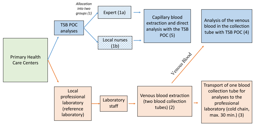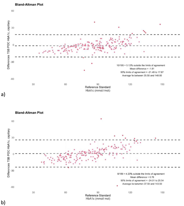 糖尿病在世界范围内造成严重的发病率和死亡率。尽管糖尿病的负担越来越重,但只有40%的糖尿病患者得到了诊断,20%的糖尿病患者实现了疾病控制。在低收入和中等收入国家,改善糖尿病护理的一个关键挑战是缺乏准确、负担得起的HbA1c即时检测方法,以促进糖尿病诊断和改善血糖管理。虽然简单的POC血糖测量是实用的,并且已经在世界上许多地方广泛使用,但测定HbA1c水平的途径仍然有限,这对于糖尿病的长期监测可能更有意义,也更推荐使用。迄今为止,大多数移动POC技术在现场使用时缺乏适用性。 近日,杂志Communications medicine上发表了一篇题为“Real-world smartphone-based point-ofcare diagnostics in primary health care to monitor HbA1c levels in people with diabetes”的文章。在这项研究中,作者测试了基于平板电脑和手机的(TSB) POC设备在资源有限环境中的适用性,并与当地基于实验室的糖化血红蛋白(HbA1c)测量进行比对。研究结果表明,无论是由专家还是由现场护士进行,TSB POC装置的测量结果与实验室测试几乎相同。因此,TSB POC方法在资源有限环境下,可为定期和负担得起的HbA1c检测提供基础,以改善这些地区患者的糖尿病护理和获得基本卫生服务。 图片来源:Communications medicine 主要内容 TSB POC技术概述 该研究使用了Jana Care公司获得CE认证的“AINA血液监测系统”,应用程序为“Aina Station app”。TSB POC技术使用5ul全血,通过硼酸亲和法在3分钟内分析血液中 HbA1c的含量。HbA1c检测试剂盒的内容包括试纸、试剂(裂解剂和蓝色硼酸偶联物)、洗涤缓冲液、采集样品的毛细管和移液头。 研究过程 所有采集的血液都来自31个不同的初级保健中心。TSB POC组分为两组,在一组中,由一名专家进行TSB POC分析;在另一组中,TSB POC分析由5名具有护理背景的现场工作人员进行采用TSB POC方法进行评价(如下图)。 同时,由当地专业实验室的卫生专业人员从患者身上抽取两份静脉全血。其中一根采血管立即送往当地临床实验室,采用认证的BIO-RAD D-10法分析。第二根采血管在卫生保健中心直接进行静脉血TSB POC检测分析。静脉血采集后30分钟内,采集患者的几滴指尖毛细管血,用TSB POC仪分析HbA1c水平。 研究概述。图片来源:Communications medicine 样本特征 样品中血红蛋白(6.2 ~ 20 g/dL)和HbA1c(27 ~ 166 mmol/mol)的变化范围很广。将TSB POC方法与当地实验室参考标准进行比较,约85%的测量值(TSB POC毛细管:84.51%,TSB POC静脉:84.78%)与实验室方法的偏差在20%以内;约62%的测量值(TSB POC毛细管:60.89%,TSB POC静脉:63.04%)与标准方法的偏差在10%以内。在TSB POC装置上检测静脉血和毛细血管血,66.67%的检测结果在10%的偏差范围内。 TSB POC与实验室参考方法的比较 Bland-Altman分析显示,TSB POC毛细管血与标准方法HbA1c的平均差异为-0.54 mmol/mol,其中5.21%的测量值在LoA之外。TSB POC静脉血与标准方法HbA1c的平均差异为-1.33,5.63%的测量值在LoA之外。TSB POC方法在对比使用毛细血管全血和静脉全血时,准确性基本一致。TSB POC毛细管血与标准方法的Deming回归分析显示Pearson’s r = 0.91,有非常强的相关性(如下图)。 TSB POC与实验室参考方法的比较。 图片来源:Communications medicine 本地护士与专家的测试一致性研究 用护士代替专家对TSB POC毛细管血进行检验,结果显示本地护士使用TSB POC设备进行HbA1c分析的平均差异为0.76,4.23%的结果超出了LoA(下图b);专家的表现与护士相当,平均差异为-1.81,5.13%的结果超出了LoA(下图a) 。 对于护士来说,92.0%的TSB POC测试正确执行,设备上没有报错。这表明与专家的表现相似,其比率为90.5% 。 本地护士与专家的测试一致性研究。 图片来源:Communications medicine 研究及设备的局限性 这项研究也有一些局限性:首先,作者没有进行受试者工作特征(ROC)分析、入组与排除分析或阳性和阴性预测值的确定,以及确定变异系数的可重复性试验。其次,作者在中等收入的环境中进行了这项研究,结果不能自动转移到没有接受过基本护理培训的卫生工作者的环境中。最后,作者未调查采血管在高温下的长时间运输对测试结果的影响。 除了本研究的这些局限性外,TSB POC设备本身也存在一些局限性,包括:首先,TSB POC方法的分析测量范围相对于当地专业实验室较小。其次,TSB POC方法的性能必须是精确的,并且必须事先对个人进行培训。这可以在分析期间大大降低较高的测试错误率。第三,测试试剂必须储存在2 ~ 8℃之间,这就要求测试环境中有冰箱。 总结与讨论 在这项研究中,作者发现基于智能手机和平板电脑的即时检测(TSB POC)方法分析HbA1c水平与现场专业实验室相当,是在资源有限的环境中监测糖尿病和心血管风险的可行且负担得起的替代方法。总体而言,Bland-Altman分析和Deming回归的结果(Pearson’s r为0.91)表明,使用毛细管血的TSB POC方法与参考方法高度一致。当使用毛细血管或静脉血时,存在可接受的差异。训练有素的专家和当地护士所做的测量也没有统计学上的显著差异。使用TSB POC设备的成本(每次测试2.13美元)是目前参考实验室执行成本(每次测试12.59美元)的17.0%,这估计每年可节省上亿美元的成本。这些发现突显了TSB POC在当地初级卫生保健中心和实地研究中使用的潜力。 |