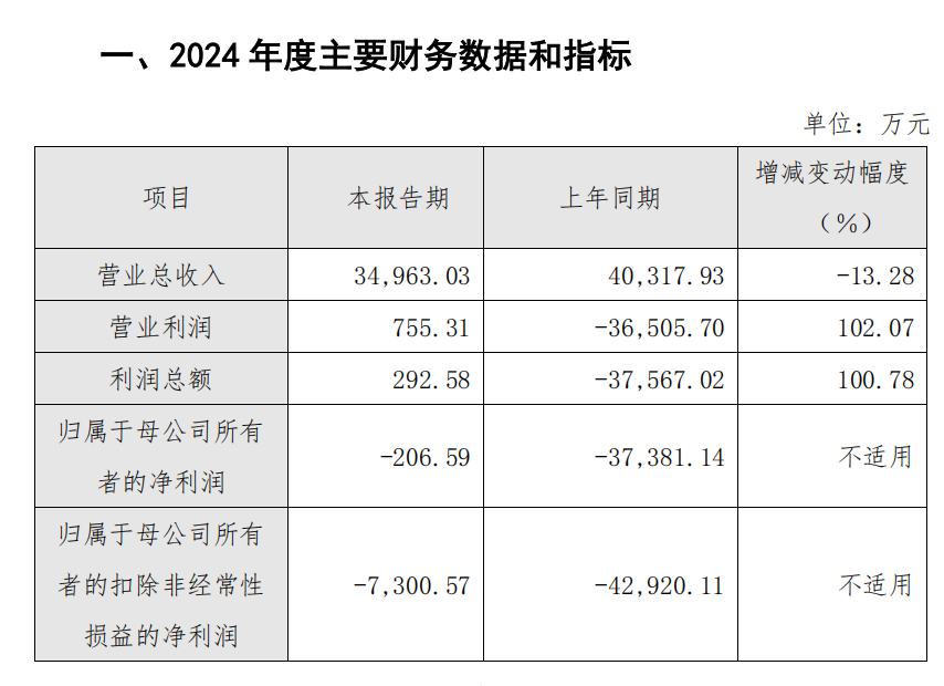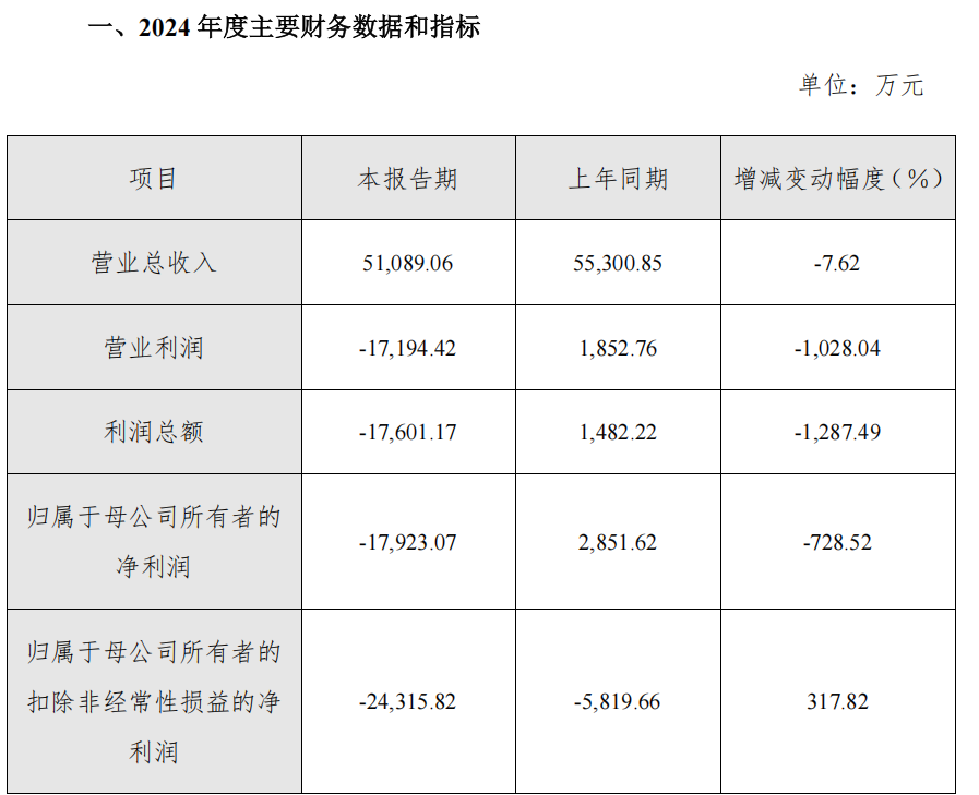 • 实现归属于母公司所有者的扣除非经常性损益的净利润-24,315.82万元,与去年同期相比下降317.82%