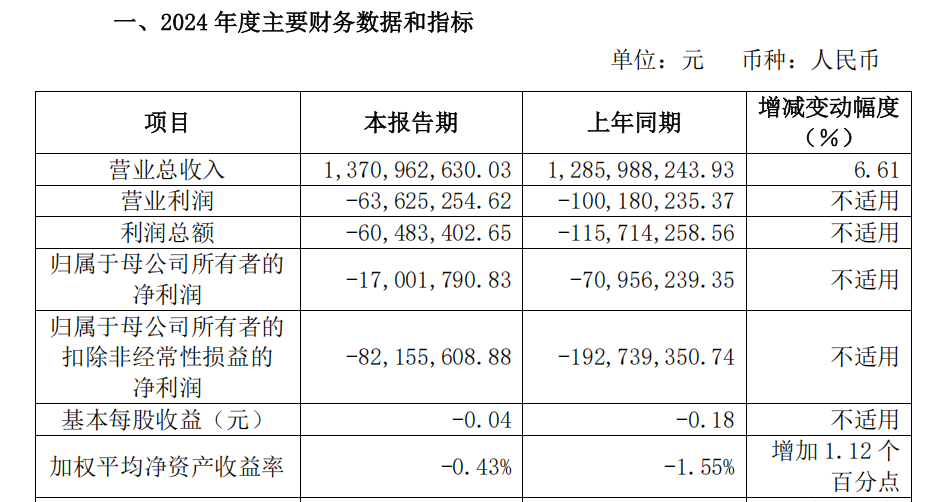 • 实现归属于母公司所有者的扣除非经常性损益的净利润-7,300.57 万元,同比减亏 82.99%。