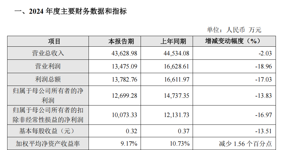 归属于母公司所有者的净利润 12,699.28 万元,较上年同期下降 13.83%;
