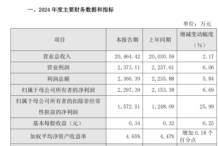 2024年度,公司实现营业收入 20,464.42万元,同比增长2.17%;