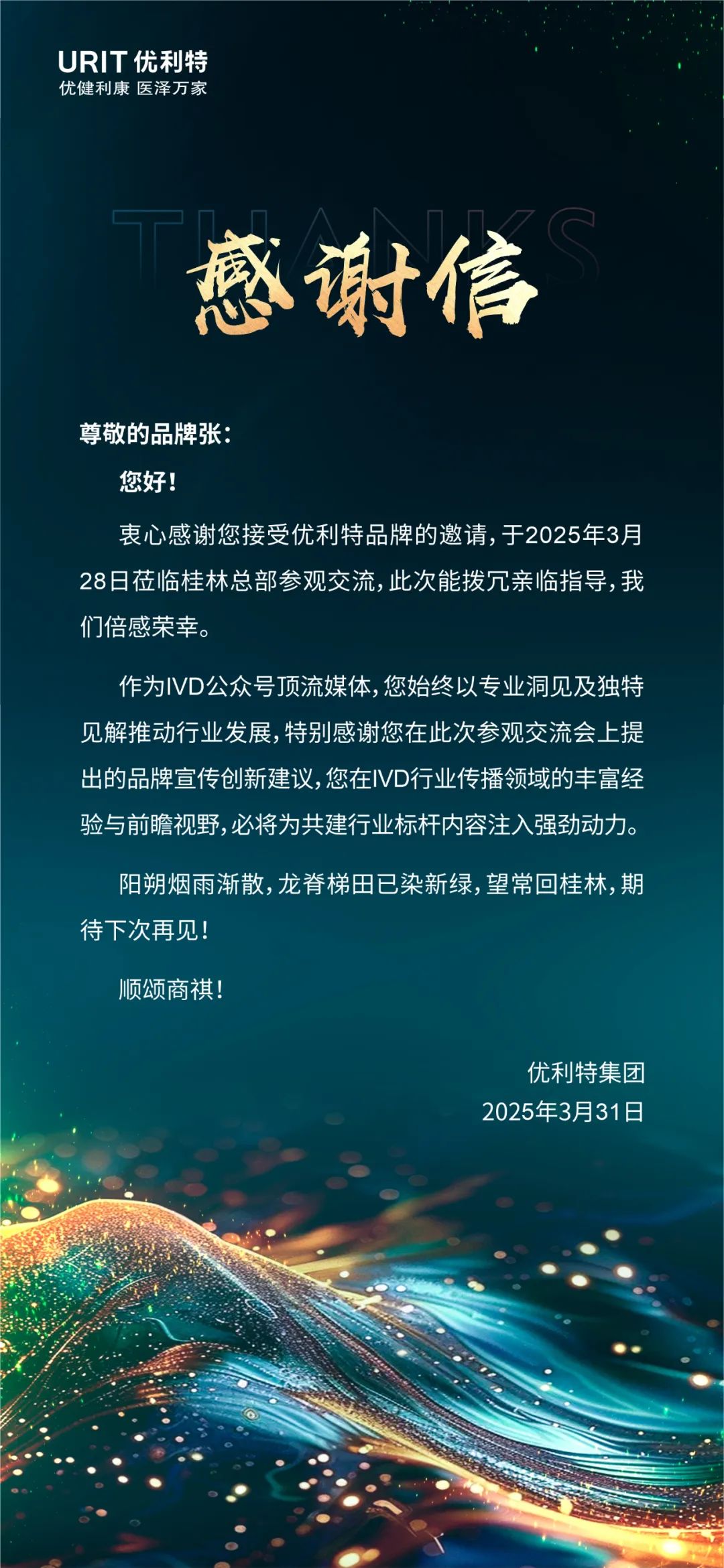 桂林山水甲天下,优利特大隐隐于其中。 3月28日,适逢优利特首次举办媒体开放日,我和几家IVD行业自媒体一起受邀走进优利特学习交流。 这是我第一次踏上八桂大地。 先是被桂林一路可见的奇峰秀水所吸引,进而被优利特的发展所触动。 在优利特集团副总裁黄杰先生的带领下,参观了多个园区、多个产品线、EMC检测中心以及座谈交流。 深刻的感受到: 这是一家被严重低估的IVD企业。 因为从中感受到了历史积淀深厚、创新产品全面、品牌增长明显、真诚服务待人。 优利特成立至今超过40年,国内IVD企业在发展历史长度上几乎没有能与其比肩的。 而梳理其在IVD整个产业的进程中的地位,也有过很多次的辉煌时刻。简单列举了一些: 1984年,第一台国产尿液分析仪诞生在优利特 1999年,首批研发成功的血细胞分析仪上市 2005年,全自动生化分析仪成功推向市场 2011年,中国第一台四角度激光散射五分类血细胞分析仪成功上市 2016年,URIT便携式尿液分析仪伴随天宫二号升空 2017年,成功推出800速以上全自动生化分析仪 2020年,全球首条实现尿液生化项目全定量分析的960T/H US-3000系列上市 2023年,IA-260全自动化学发光免疫分析仪上市、BS-7000血液分析流水线上市 始于尿液分析仪,优利特目前已经是覆盖十大系列的体外诊断产品线的综合型IVD创新企业。包括尿液分析、血细胞分析、生化、流式细胞仪、化学发光、POCT、动物诊断、病理等。 产品行销全球180多个国家和地区,中国尿液分析产品出口排名第一,IVD行业仪器出口排名第二,2024年海外市场营收占比近40%,2025年整体公司业绩有望突破20亿。 在参观过程中,能够感受到现代与传统的碰撞,创新与质量的坚守。 在参观老厂区的时候,一位同行伙伴写下了如下文字: 而在参观新厂区的时候,更多的是看到对现代化生产管理的实践和对质量控制的大笔投入。我看到的是这样的: “智能化的工厂按照精益管理布局,生产车间井井有条,机器人穿梭运载货物,智能化的仓储管控着每一台设备的进出,智慧大屏上闪烁着不断跳动的数据,充满科技感。在CNAS认可的检测中心,优利特投入几千万建立了EMC实验室,让自己的产品经过最严格的检测后才推向市场。” 在与黄总的交流中,感受到优利特正在以产品创新为基,以品牌为高地,打造高质量的发展。 黄总认为,打价格战并非IVD企业长久之路。要成为一家百年企业,必须要坚持长期主义,建立起产品、服务、品牌的三角。在海外市场,优利特已经通过持续的品牌塑造,开始比肩国际一线企业的影响力。在国内市场,近两年可以看到优利特品牌的快速攀升,无论是展会的布置、会议活动的筹备、传播的策略都在展示出其独特的品牌价值。 真诚待人,于无声处见关怀。 几天的行程中,无处不感受到优利特的细致与关怀。来去之间,都有邀请函和感谢函。第一天和国际友人一起聚餐,细致到桌卡、菜单上都有优利特的印记。人到车到,情绪价值拉满,待人以诚,无处不显用心。 还记得当天参观完,晚宴之中,恰逢一位朋友过生日(一天前聊天中无意透露),黄总在当天亲自选了鲜花、定了蛋糕、写了贺卡,在恰当的时机推了出来,再加上相片记录,当事人感动落泪。 而为了更好的服务客户,优利特在海外市场也建立了庞大的工程师队伍,方便更好的就近服务客户,让专业和服务触手可得。 正是基于此,优利特赢得了更多的客户信赖,朋友的赞誉,很多的合作伙伴都成了十几年的朋友。 参观之余,还一同尽享了桂林的山水之美,畅游漓江、徒步十里画廊。 黄总说,在工作中生活,在生活中工作。即使在徒步之中,也能感受到他的时间管理,行程安排都是分钟级别的控制。 归途之时,恰好看到人民日报推送《广西,好嘢》。好嘢表示赞美,“好东西”或“好棒”。 |