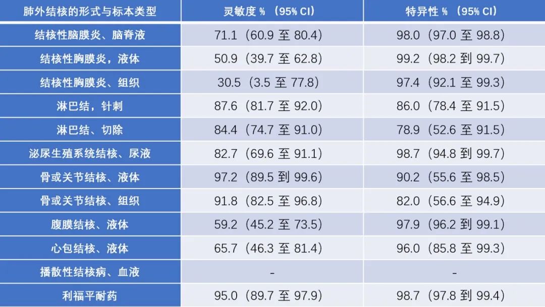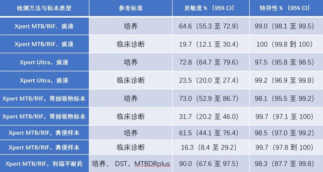 Xpert MTB/RIF 这个英文包括三个部分,Xpert是一种分子信标的方法,MTB是结核分枝杆菌的缩写,RIF是利福平的缩写。 Xpert MTB/RIF中文全名是结核分枝杆菌及利福平耐药基因检测,是一种检测结核分枝杆菌复合体DNA的自动诊断测试方法。 它的检测位点是结核分枝杆菌rpoB基因,并进行耐药相关突变的检测,rpoB基因是95%结核分枝杆菌发生利福平耐药的基因位点,该基因突变会导至RNA聚合酶β亚基构象变化,降低利福平与靶点的结合亲和力。 该技术在2014年被WHO认可,被用于结核菌涂片与培养的替代检查。 该检查方法操作流程主要包括2部分: 1. 样本处理:痰液、脑脊液等样本与裂解液混合后,完成裂解和DNA提取。 2. 扩增与检测:试剂盒内置冻干试剂,系统自动完成半巢式PCR扩增和荧光信号分析,无需人工干预。 该技术具有5个显著的优势: 1.检测结果快:只需要2个小时。 2.检测结果灵敏度高:最低检测限为5个MTB基因组拷贝或131 CFU/mL痰液,显著高于涂片镜检(10,000 CFU/mL)。 3.检测方便:只需要较少的动手技术时间,该技术只需要将样本加入到GeneXpert试剂盒后,便可以等待结果。 4.结果一致性高:样本的处理和PCR扩增及检测全在一个自封闭的检测单元中进行,人为技术影响小。 5.生物安全性高:处理样本的试剂具有强大的杀菌能力。 Xpert这项技术分为G1,G2,G3,G4和Ultra,5个世代,目前主要为G4版本,Ultra技术是最新的检查方法,相较于之前方法灵敏度更高,但特异度相对减低。 目前浙大儿院送检样本要求及保存条件见下图: 注: 1. 由于没有氢氧化钠处理胃酸,目前胃液检测暂时无法进行,其他检测标本均可以进行。 2. 血液样本不能进行Xpert检查。 对儿童肺结核的检测准确性情况,见下图1: 以培养作为金标准,对于肺外结核的检测准确性情况,见下图2: 总体而言: 1. Xpert特异度很高,一旦出现阳性要高度考虑结核感染。 2. Xpert灵敏度在能找到细菌的儿童肺结核中较高,普遍在60-70%的水平,但是由于儿童肺结核含菌量小,如果以临床诊断作为金标准,其灵敏度只有20-30%左右。 3. Xpert在肺外结核中灵敏度显著高于肺结核。 4. 以个人浅显的临床经验和阅读文献思考来说,组织Xpert的灵敏度应该远高于液体的灵敏度,这与这篇综述不相同,比如结核性胸膜炎活检组织的灵敏度可达到90-100%3。 参考文献来源: 1.Kay AW, Ness T, Verkuijl SE, Viney K, Brands A, Masini T, González Fernández L, Eisenhut M, Detjen AK, Mandalakas AM, Steingart KR, Takwoingi Y. Xpert MTB/RIF Ultra assay for tuberculosis disease and rifampicin resistance in children. Cochrane Database Syst Rev. 2022 Sep 6;9(9):CD013359. doi: 10.1002/14651858. 2.Kohli M, Schiller I, Dendukuri N, Dheda K, Denkinger CM, Schumacher SG, Steingart KR. Xpert® MTB/RIF assay for extrapulmonary tuberculosis and rifampicin resistance. Cochrane Database Syst Rev. 2018 Aug 27;8(8):CD012768. doi: 10.1002/14651858. 3.ShawJA, Diacon AH, Koegelenberg CFN. Tuberculous pleural effusion. Respirology. 2019Oct;24(10):962-971. doi:10.1111/resp.13673. |