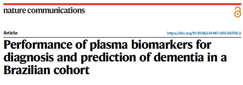 近日,杂志Nature communications上发表了一篇题为“Performance of plasma biomarkers for diagnosis and prediction of dementia in a Brazilian cohort”的文章。作者使用了巴西痴呆队列长达4.7年的随访临床数据,评估了各种血浆生物标记物的诊断性能,并最终证实了血浆pTau217(单独或与Aβ42的比值)作为CSF分析诊断AD和确定淀粉样蛋白状态可替代方法的潜力。