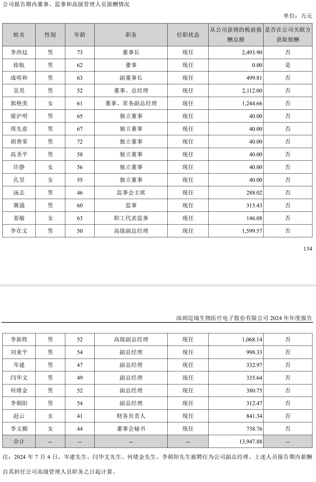 整理自企业年报 4月28日,迈瑞医疗发布2024年年度报告。 报告期内,公司实现营业收入367.26亿元,同比增长5.14%;实现归母净利润116.68亿元,同比增长0.74%;经营活动产生的现金流量净额124.25亿元,同比增长12.32%。 值得注意的是,迈瑞医疗营收和归母净利润已自上市以来保持了连续7年的双增长。 业绩的翻倍增长,无异于用5年时光“再造了一个迈瑞”,这在国内外宏观环境剧烈变化的挑战下尤其难得。 据统计,2024年迈瑞在职员工的数量合计21667人,相较于2023年新增了3623人! 2024年 2023年 2024年度,迈瑞的销售费用中,职工薪酬约为35.44亿元,销售人数为5137人,销售人均薪酬约为68.97万元/年。 2023年,销售薪酬35.7亿元,销售人数4578人,平均薪酬77.9万元/年。 2022年,销售薪酬28.75亿元,销售人数4071人,平均薪酬70.62万/年。 2021年,销售薪酬25.91亿元,销售人数3540人,平均薪酬73.19万/年。 2020年,销售薪酬22.94亿元,销售人数3440人,平均薪酬66.68万/年。 2019年,销售薪酬20.22亿元,销售人数3163人,平均薪酬63.93万/年。 2024年度,迈瑞的研发费用中,职工薪酬约为24.46亿元,研发人数为5259人,研发人均薪酬约为46.5万元/年。 2023年,研发薪酬23.6亿元,研发人数4425人,平均薪酬53.2万/年。 2022年,研发薪酬19.4亿元,研发人数3927人,平均薪酬49.4万/年。 2021年,研发薪酬18.5亿元,研发人数3492人,平均薪酬52.9万/年。 2020年,研发薪酬13.3亿元,研发人数3070人,平均薪酬43.3万/年。 2019年,研发薪酬10.7亿元,研发人数2508人,平均薪酬42.6万/年。 最后来看下迈瑞董监高薪酬,总计约为1.39亿元,其中董事长李西廷2494万元,总经理吴昊2112万元。 迈瑞建立了按岗位、技能、业绩、效益决定薪酬分配制度和激励体系。 在薪酬激励方面,公司设立多样化薪酬结构制度、差异化奖金制度、及时激励制度、长期激励制度等,对做出突出贡献的员工给予各种类型的奖励,通过多种方式激励和保留员工,最大程度地调动员工的工作积极性,提升员工的幸福感,以有效地控制人才流失风险。 公司每年持续推行长期激励计划,如现金递延计划或者员工持股计划。在荣誉激励方面,为有效激发员工潜能、强化组织效能,公司秉持人才引领发展的核心理念,构建了体系化、多维度的分层荣誉激励机制。 设立覆盖商业贡献、客户价值创造及职能创新等领域的荣誉专项奖,并每年举办高规格的表彰季,突出仪式感和荣誉感,以标杆示范效应驱动全员对标优秀。 免责声明:这些数据都是平均值参考,肯定有被平均的情况。毕竟不同岗位职级差距摆在那儿,高的高低的低,大家看看大方向就行。 |