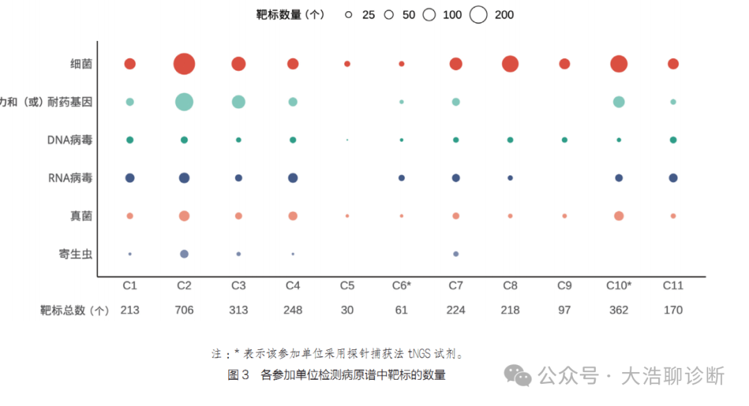 1.更便宜的价格:tNGS500-600元,大约是mNGS价格的20%左右,当然目前300+的tNGS并不稀奇,tNGS提升检测性价比和容错率。2.更准确:使用捕获探针或多重扩增子方式的tNGS都比mNGS更灵敏。3.可区分:精准可以区分亚型,还原病原真实含量为定植or感染提供依据。4.影响更小:不受宿主人源基因影响,解读可以标准化、自动化。由于不受宿主人源基因影响,所需reads数较低,上机数据量更低也变相降低成本。5.TAT相对更短:样本汇报时间更短,时间节省可在建库、测序、报告解读等步骤上。6.更针对和易用:与无偏倚的mNGS不同tNGS扩增有针对性,因此针对症候群和应用人群及场景更加明确,更容易开展。90%以上mNGS阳性检出病原微生物种类不超过200种,所以tNGS针对性的覆盖100-300种常见病原体+耐药基因和毒力基因的panel组合更加合理。 针对不同症候群疾病的100-300种病原体panel应该是有所不同的。 原因一:是不同症候群疾病的病原谱本身不同所导至。 原因二:有些病原体在特定症候群疾病中检测并无太大意义。 针对不同的症候群疾病设计panel,致使其满足临床95%-98%的需求,因此使tNGS在应用场景明确下比mNGS更加合适、易用。为什么用这个标题?因为最新《病原靶向高通量测序技术质量评价联合研究》这篇文章发布。提示!本文只是将文章结果和结论简单概述,并阐述自己的观点。该研究对11家企业研发的tNGS试剂进行分析,目的为分析其tNGS技术选型的特点及检测性能。 研究非常严谨由于要和上次mNGS进行对比,所以使用与上次研究相同的联合研究的参考品。通过将PRH1-PRH4样本分别经过3次10倍稀释后,最终形成16个样本。 虽然11家企业都称为tNGS,但其panel内包含的病原体与耐药/毒力基因数量差异巨大,panel内指标范围是30-706个。另外从tNGS与mNGS对比可以看出,二者的检测结果除了肺链、水痘带状疱疹病毒、副肠孤病毒A型、人呼吸道合胞病毒B型等病原体阳性符合率差距较大外,其余检测水平接近。 文章给出结论为:本次tNGS检测总体性能表现与2019年mNGS试剂相近。 1.引物二聚体占比或有效数据量占比,不同参加单位的数据差异较大。引物二聚体占比为0.01%-98%(部分参加企业引物二聚体占比的中位值高达75%),这代表引物有优化空间。2.在阳性结果中:埃可病毒11型、肺炎链球菌、人呼吸道合胞病毒B型检出率较低,分别为20%、55%、67%。11家企业中仅有2家单位(C1、C10)对靶标范围内微生物检测均报告阳性。这意味很多企业对于某几个病原体检测不够灵敏。3.在阴性结果中:11家企业中,5家企业数据的阴性符合率均为满分,占45%。6家企业数据存在不同比例的假阳性情况占55%。分析显示,导至tNGS假阳性的原因主要是样本交叉污染和分类错误,分别占比50%和38%。这意味着样本交叉污染成为影响特异性主要因素,后续更污染和流程。文章使用相同的样本对比tNGS和mNGS的总体性能性能,并给出相近的结论。但文章中有部分信息未被提及,如二者检测时间、测试成本、报告解读难易、整体操作难度等方面的对比。此外未引入人源基因干扰、也未对于临床非常关注毒力和耐药基因进行检测和对比。尤其是耐药基因与精准用药关系密切,特别是以我国的抗微生物药物耐药性(AMR)情况较为严重。连年以来MRSA、VRE、CRE都保持在较高水平。因此阐述观点为:一款产品的诞生,是许多因素平衡的结果,如成本、时效、覆盖率、临床意义、技术性能等。因素间需要侧重和取舍,针对不同产品/技术,都有其最适合的应用场景和人群。这就好比问DS抗原和核酸谁更准确,DS能找出很多数据与文献说核酸检测更准确。于是继续发问,既然核酸更准,那么现在家用自测用核酸更合适?而DS可能回复到,当下抗原还是更适合家用自测。tNGS通过价格、覆盖率、性能、TAT等特点带来的性价比,从而更针对、更明确、更易用、更适合的服务更多患者和终端,这也许才是tNGS这款产品真正的价值。
