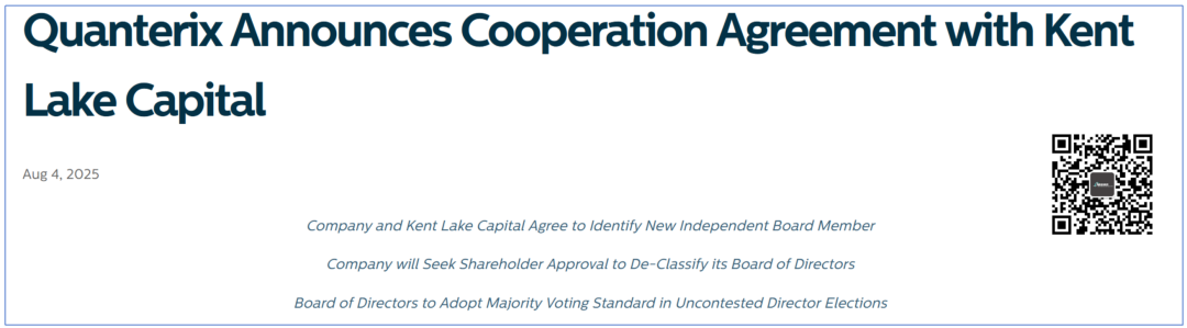 跟大家分享个好玩的。 2025年8月4日,Quanterix,就是单分子免疫技术SIMOA的那个,刚并购完了Akoya的那个...发了个公告。 主要内容就是与Kent Lake和解了,对,就是那个强烈反对Quanterix合并Akoya的那个。(可以翻翻这篇) 2025年1月10日,Quanterix宣布以全股票形式吸收合并Akoya Biosciences。 2025年2月13日,Kent Lake就发布公开信,实名反对Quanterix与Akoya合并。 甚至上线了个网站“Save Quanterix(救救Quanterix)”。 如今,网站已经only fans了... 那么,究竟是什么让他改变主意了呢? 甚至,公告还显示:“根据协议条款,Kent Lake同意撤回其之前为年度会议提交的董事提名和股东提案,并将支持董事会的候选人。此外,Kent Lake同意在Quanterix 2027年度会议提名截止日期前三十天之前遵守惯常的静默期和投票承诺。” 前倨而后恭,思之令人发笑! 呃,你听我狡辩。 第一,合并已经完成,反对已无意义。 虽然Kent Lake作为大股东持股4.4%的Quanterix股票,但是,在目前阶段除了继续恶心Quanterix以外,要拉拢更多的股东付出的代价恐怕比不上收益。 第二,Kent Lake部分目的达成。 Kent Lake当时一个重要的诉求是撤换原Quanterix董事会主席 Martin Madaus。 而2025年7月8日,Martin Madaus已经离任。 第三,Kent Lake还得到了其他好处。 这点我们展开说,这也是我们标题的关键。 “前倨后恭”的秘密 第一,改革Quanterix董事会。 此前,Quanterix董事会分为Class I和Class III两类董事,每个类别的董事任期通常是三年,每年只有部分董事的任期到期并需要重新选举。 这必然造成董事会抱团,客观上限制了股东对董事会的影响。 Quanterix与Kent Lake的协议就包含改革董事会,取消分级制度。 进而,Kent Lake还要提高自己的影响力。 第二,“渗透”Quanterix董事会。 二者达成的另外一个点就是Kent Lake得以通过提名董事候选人,进而达到影响Quanterix董事会决策。 具体的是由一家从Kent Lake选定的高管猎头公司提供6名候选人名单,Quanterix和Kent Lake将共同从名单中选出一名候选人,并在2025年12月1日之前任命其为Class I董事。 “候选人都是我提供的,你怎么跟我斗?” 第三,报销,统统报销! Quanterix将报销Kent Lake自2025年1月10日以来与公司合作、谈判和签署协议相关的合理费用,最高不超过95万美元。 “你笑我前倨后恭,我笑你钱包空空” 最后 本来是个好玩的故事,不过... 悲哀的发现,似乎就我们是白跟着起哄了... 注1:https://ir.quanterix.com/news-releases/news-release-details/quanterix-announces-cooperation-agreement-kent-lake-capital 注2:https://ir.quanterix.com/static-files/b0d5b0d8-6c31-4c79-b86b-222d86c226ea |