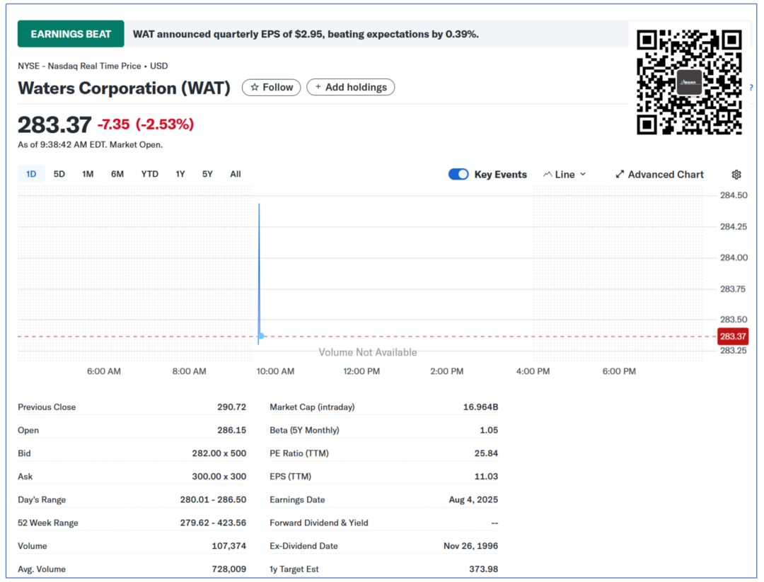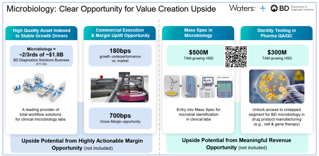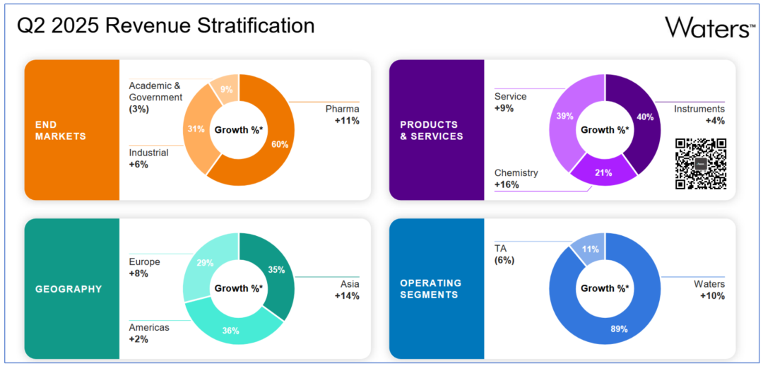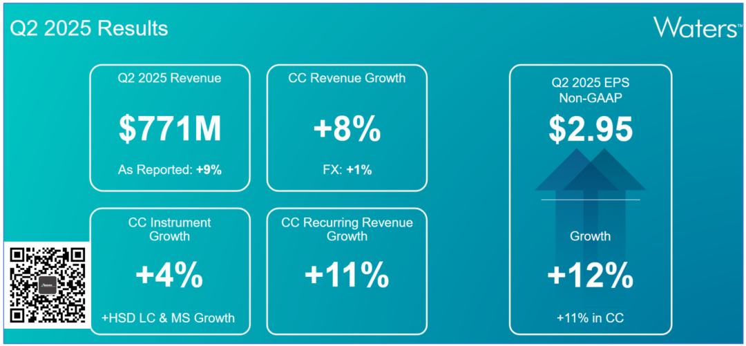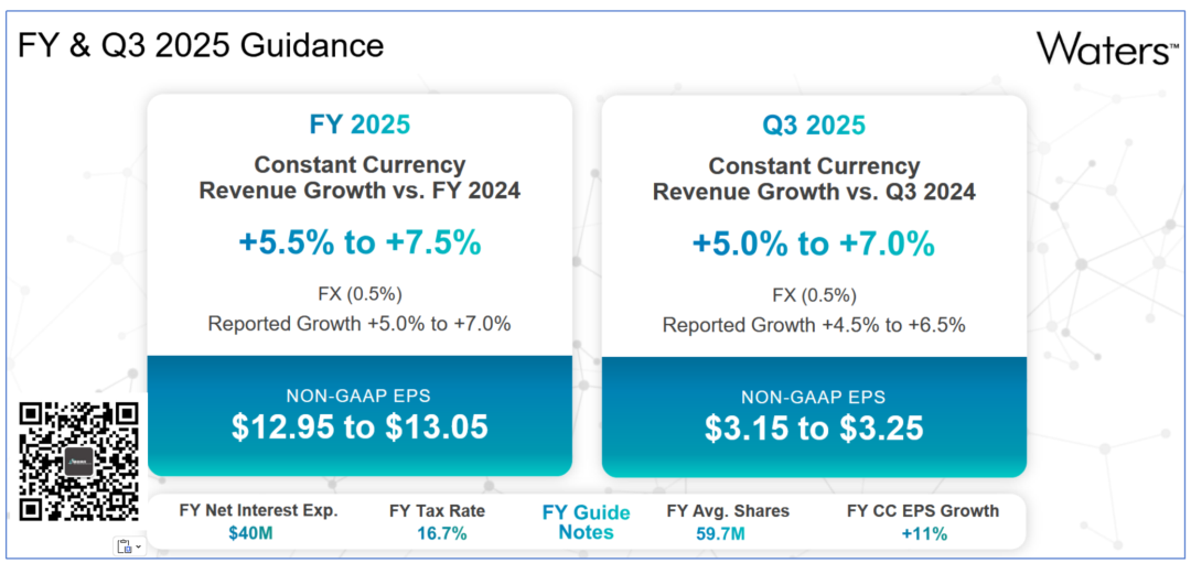 时间紧,任务重,我们还有Twist的财报要看...凑合着先聊聊Waters。 先声明,Waters的财报会纪要还没来得及看,仅从目前看到的财务资料跟大家汇报下。 超预期 2025年8月4日,Waters发布了2025Q2财报。 财报显示,公司营收达到7.71亿美元,同比增长8.9%,环比增长更是达到夸张的16.6% 这一数字,超出了公司2025Q1做出的预测。 公司non-GAAP EPS 2.95美元,虽然没达到预期的2.98美元极值,但是也就一步之遥了。 那么,这个结果不说暴涨也得..小涨吧? “对不起,请跟我走一趟,您犯了看财报炒股罪...” 开盘后,Waters股价就开始下跌,截止完稿时仍然趴在地上。 难道是各业务板块或者哪个区域表现不好? 国区牛X 先从从终端用户来看,不出意外科研和政府出现了下滑,这与美国削减NIH经费有着直接的关系。 以不变汇率计算,这块业务下滑了3%。 但是从财报上的金额来看,甚至持平。 而工业消费者领域同比增长7.3%,环比甚至增长达到16.9%,完全弥补了科研端的下滑。 更加值得注意的是制药重拾涨势,同比增长11.1%,环比增长18.1%。 这几本上是我们跟踪的3年来最好水平。 分区域来看,中国区销售额达到1.17亿美元,同比增长17%,环比更是暴涨28.9%。 再重申一遍,还没有看到财报会上高管的表述,尚不清楚是否由于关税备货导至中国区销售额上涨。 从趋势来看,中国区销售额已达近3年来的极值。 故人Q总,应该笑开了花吧。 哦对了,自2025Q1开始,日本区的销售额就归到Asia others了... 看起来各板块、区域都还好啊,为毛跌了呢? 难道是...预期不好? 预期 从公开的2025全年财务指引来看,Waters不仅没有下调预期,反而上调了。 营收增长率从5.0%~7.0%上调至5.5%~7.5%,non-GAAP EPS 从12.75~13.05美元,上调至12.95~13.05美元。 这几怪了,不应该啊? 我们认为,一个可能点是市场对Waters与BD生物科学与诊断部门的合并心存疑虑。 我们此前也曾报道过这项高达175亿美元的巨型收购。 根据交易安排,BD将在交易完成前获得约40亿美元的现金分配,而Waters预计将承担约40亿美元的额外债务。 并入Waters的BD业务包括: 生物科学业务:流式细胞仪和试剂,以及创新的多组学工具。 微生物学和传染病诊断业务:分子诊断、宫颈癌筛查、微生物学自动化和现场护理产品。 BD的原股东将获得新合并后公司39.2%的股份,Waters原股东将获得合并后新公司60.8%的股份。 管理层认为,合并将在成本端和营收端带来协同。 这个算法咱也看不懂,也不知道准不准,更不知道能否实现,大家理解下就行了。 还是要看实际表现。 从侧重点上来看,似乎Waters很看重BD的微生物业务。 Emm,这部分我们还是继续观察吧。 等等,是不是像我这样观望的人多了就先溜了?? 不管怎么样,反正国区牛X就对了。 |