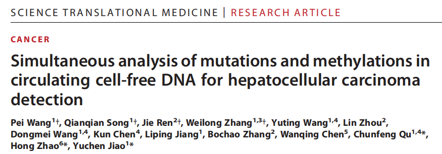 | Science translational medicine | Simultaneous analysis of mutations and methylations in circulating cell-free DNA for hepatocellular carcinoma detection |