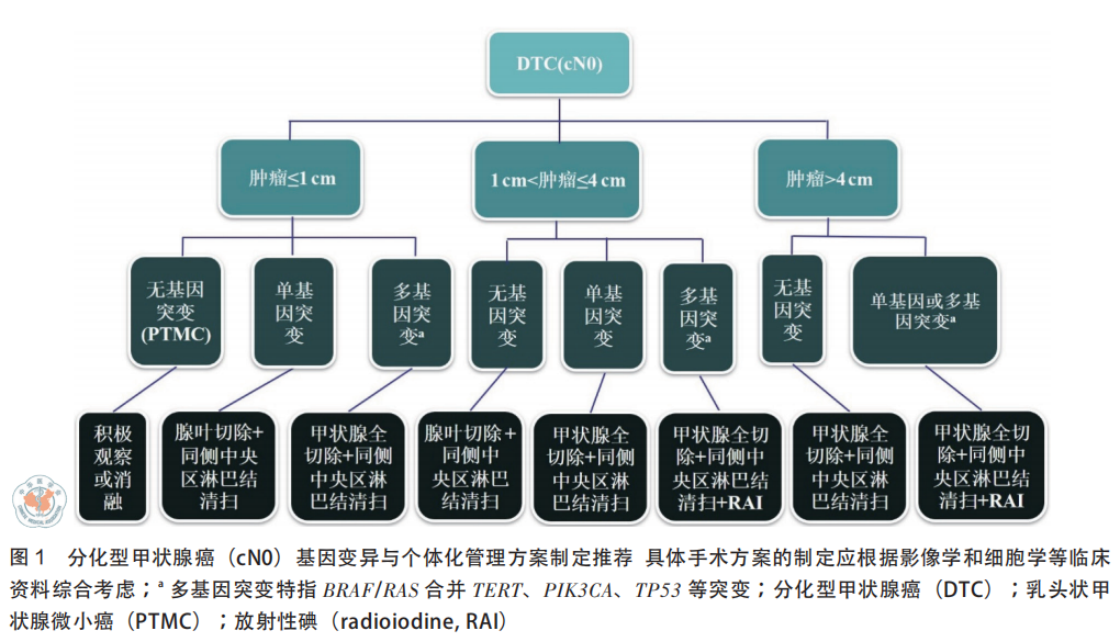 | 甲状腺癌是内分泌系统和头颈部最常见的恶性肿瘤,起源于甲状腺滤泡上皮细胞或滤泡旁细胞。根据起源细胞分为滤泡细胞源性甲状腺癌和滤泡旁细胞源性甲状腺癌(即甲状腺髓样癌,约占1-5%),滤泡细胞源性甲状腺癌包括分化型甲状腺癌(DTC,约占90-95%左右)、嗜酸细胞癌(OCA)、低分化癌(PDTC)和未分化癌(ATC,占比<2%);其中DTC又分为乳头状甲状腺癌(PTC)和滤泡状甲状腺癌(FTC)。过去 30年中,全球范围内甲状腺癌发病率大幅增加,成为十大恶性肿瘤之一。根据国家癌症中心2022年数据,新发甲状腺癌病例为46.61万例,新发病例排名第三位,仅次于肺癌和结直肠癌。今天,我们就聊聊甲状腺癌基因检测的相关内容,希望可以帮助有需要的朋友。如有疑问,欢迎文末添加微信交流。明确诊断是肿瘤治疗的前提,超声引导下细针穿刺(FNA)是甄别甲状腺结节良恶性的重要方法,利用术前FNA可有效提高甲状腺手术恶性肿瘤比例,避免不必要的手术。FNA检测结果分为五类(表2)。  其中I类II类分别为无法诊断或标本不满意、良性,VI类为恶性肿瘤。而III类至V类则为不确定,给临床带来了巨大挑战;研究表明,约有25%的甲状腺结节无法通过FNA确认良恶性,在这25%无法确认良恶性结节的患者中,大多数人选择了手术,但约有80%最终确认为良性,接受了不必要的甲状腺切除手术;因此,III至VI类的良恶性判断决定了甲状腺结节的管理方案制定。近年来,基因检测在协助甲状腺结节良恶性判断取得了较大的进展,如BRAF在乳头状甲状腺癌中突变率高达80%,BRAF突变甲状腺结节恶性风险达99.8%;另外,RAS突变、RET重排、TERT启动子突变及TP53突变等也与甲状腺癌有较强的关系。因此甲状腺癌CSCO指南,CACA指南,NCCN指南及甲状腺癌术后病理诊断专家共识(2025版)均推荐经FNA无法确认良恶性的甲状腺结节进行BRAF、RAS、TERT启动子、TP53等基因进行检测。 外科手术是甲状腺癌最重要的治疗手法,分化型甲状腺癌(DTC)切除术式主要包括甲状腺全切术和甲状腺腺叶切除术,两种方法各有优缺点。在临床手术过程中,部分DTC是选择腺叶切除还是甲状腺全切还存在一定争议,研究表明,携带BRAF基因突变、BRAF&TERT共突变及BARF/RAS&TERE共突变等的甲状腺癌患者有较高的复发风险,优先选择甲状腺全切+同侧中央淋巴结清扫,甲状腺癌基因检测与临床应用广东专家共识(2020版)指出,在手术前,可结合BRAF、RAS合并TERT、PIK3CA突变情况判断复发风险程度,制定个体化手术方案。放射性碘是分化型甲状腺癌重要的治疗手段,可根据适应症、目的和方法的不同分为清甲(清除手术后残留于甲状腺床的甲状腺组织,便于长期随访及肿瘤复发检测)、辅助治疗(辅助治疗降低复发风险等)及清灶治疗(对无法手术切除的局部或远处转移病灶的治疗,延缓疾病进展,旨在改善DSS和OS)。然而部分分化型甲状腺癌出现碘抵抗现象,这部分患者称为放射性碘难治性分化型甲状腺癌(RAIR-DTC),研究表明,BRAF V600E、RET、TERT启动子、RAS及TP53等基因突变与RAIR相关。放射性碘难治性分化型甲状腺癌诊治管理指南(2024版)建议DTC患者进行BRAF等分子检测一直到RAIR的预判和后期治疗。 对于不可手术或放射性碘难治的甲状腺癌患者,靶向治疗是重要的治疗方式。在甲状腺癌中,最常见的突变基因为BRAF V600E突变、RET融合及NTRK融合。与结直肠癌一样,BRAF V600E突变同样是甲状腺癌常见的突变位点之一,2025CSCO滤泡上皮来源甲状腺癌诊疗指南及甲状腺癌NCCN指南指出,携带BRAF V600E突变的甲状腺癌患者可以使用达拉非尼联合曲美替尼进行治疗。除了上述用于BRAF V600E突变的达拉非尼联合曲美替尼外,甲状腺癌相关指南还推荐了两个泛靶点相药物进行甲状腺癌的治疗,包括推荐使用恩曲替尼、拉罗替尼及洛普替尼用于治疗携带NTRK融合的甲状腺癌患者,推荐使用赛普替尼和普拉替尼用于携带RET融合的甲状腺癌患者。与乳腺癌一样,部分甲状腺癌也与遗传相关,家族性遗传甲状腺癌包括遗传性甲状腺髓样癌(HMTC)和家族性甲状腺非髓样癌(FNMTC)。遗传性甲状腺髓样癌(HMTC):研究表明,约有25-30%的甲状腺髓样癌为HMTC,HMTC又分为多发性内分泌肿瘤2A型(MEN2A)和多发性内分泌肿瘤2B型(MEN2B),约有95%的HMTC由RET基因突变导至,95%的MEN2A患者的RET基因在10号外显子的第609、611、618、620位以及11号外显子的第634位密码子发生突变。95%的MEN2B患者携带RET基因第16号外显子M918T突变,不足5%的MEN2B患者携带15号外显子A883F突变。家族性甲状腺非髓样癌(FNMTC):目前尚未发现FNMTC的特异性致病基因。综合征型FNMTC与已知的肿瘤易感基因相关,如APC基因是FAP综合征的致病基因。而在非综合征型FNMTC致病基因的研究中,已发现DICER1、FOXE1、PTCSC2、POT1、TCO、NMTC1 等基因与FNMTC的易感性相关。中国家族遗传性肿瘤临床诊疗专家共识(2021年版)—家族遗传性甲状腺癌建议相关甲状腺癌患者进行RET、APC等基因的筛查以确认遗传风险。以上就是甲状腺癌基因检测的诸多内容,我们欣喜的看到基因检测在甲状腺结节良恶性判断、手术方案制定、放射性碘治疗、靶向治疗及遗传筛查发挥着重要的作用,为甲状腺结节、甲状腺癌的进一步治疗提供强有力的支持,改善相应患者的生活状态。甲状腺细针穿刺细胞病理学诊断专家共识(2023版)放射性碘难治性分化型甲状腺癌诊治管理指南(2024版)中国家族遗传性肿瘤临床诊疗专家共识(2021年版)—家族遗传性甲状腺癌甲状