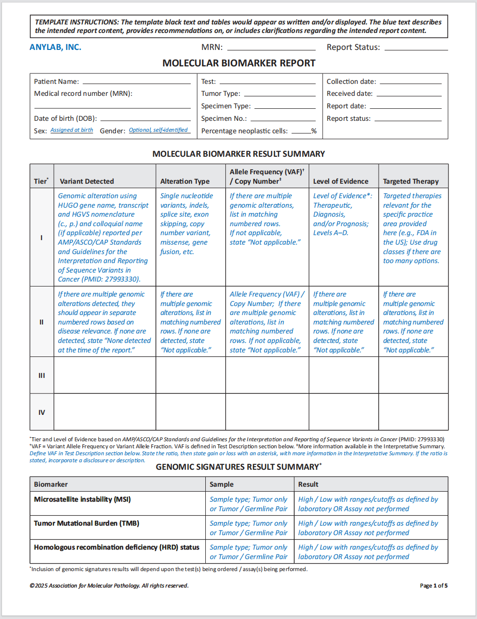 参考资料: https://www.amp.org/clinical-practice/improving-molecular-biomarker-reporting/ https://www.jmdjournal.org/article/S1525-1578(25)00224-7/fulltext